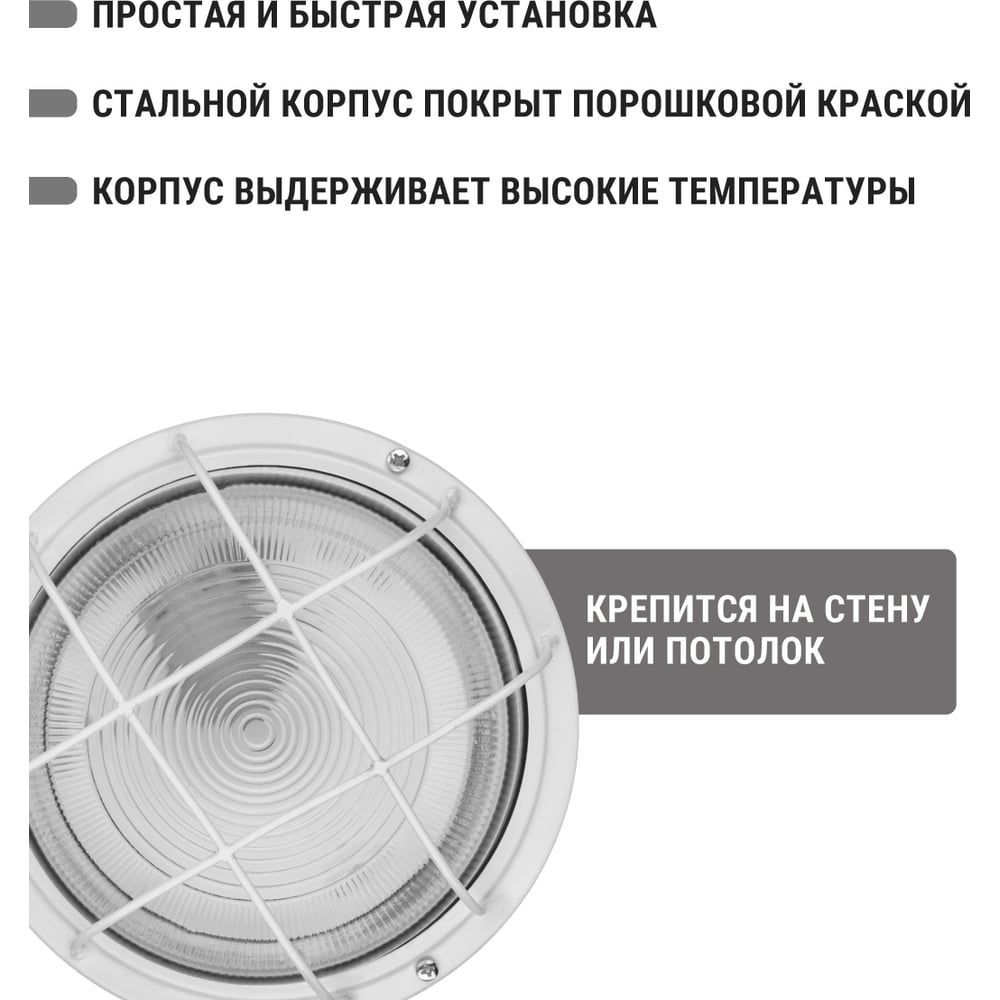 Габариты без упаковки 210х100 мм Лампа в комплекте нет Поверхность плафона/арматуры глянцевая/матовая Цвет плафона/арматуры прозрачный/белый Вес нетто 1.65 кг Мощность светильника 100 Вт Цоколь E27 Тип лампы накаливания/энергосберегающая (КЛЛ)/светодиодная Цветность не применимо Защита от пыли и влаги IP65 Материал корпуса металл Материал плафона стекло Вид крепления накладной Коллекция НПП Длина 21 см Ширина 21 см ГОСТ ТР ЕАЭС 037/2016 Форма корпуса круг Влагозащищенный да Пылезащищенный да Тип управления нет Высота 10 см Мощность лампочки 100 Вт Провод без провода Основной цвет прозрачный Min температура эксплуатации -40 °С Max температура эксплуатации 60 °С Диаметр 21 см Количество ламп 1 шт Количество и напряжение элементов питания 220В Климатическое исполнение УХЛ2 Элементы питания сеть Взрывозащищенный нет Термостойкость нет Датчик движения нет Защитная решетка да Датчик звука нет Вандалоустойчивость нет С датчиком освещения нет Управляющее приложение нет LED-подсветка нет С пультом управления нет Голосовой помощник нет Протокол управления нет