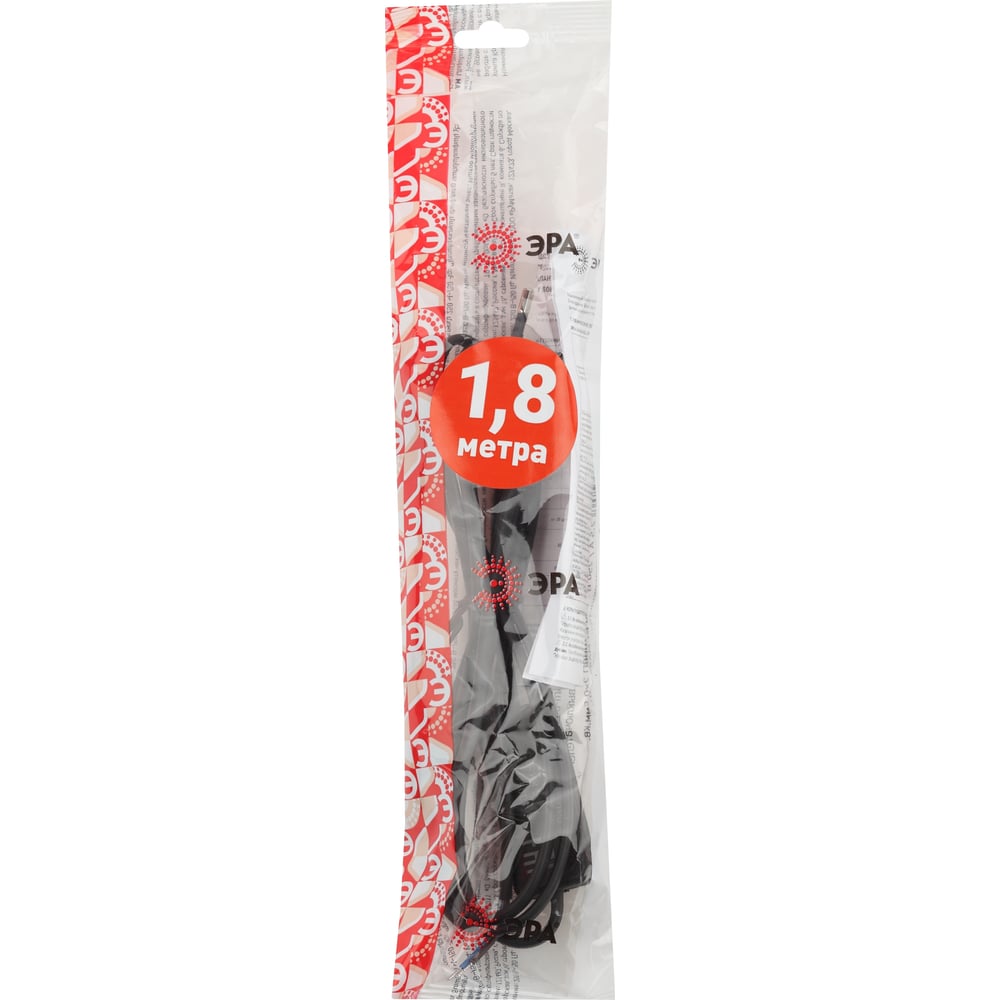 Шнур для бра ЭРА UX-ШВВП-S-1,8m-B с выключателем, 1,8 м, ШВВП, 2x0,5мм2, черный Б0044072