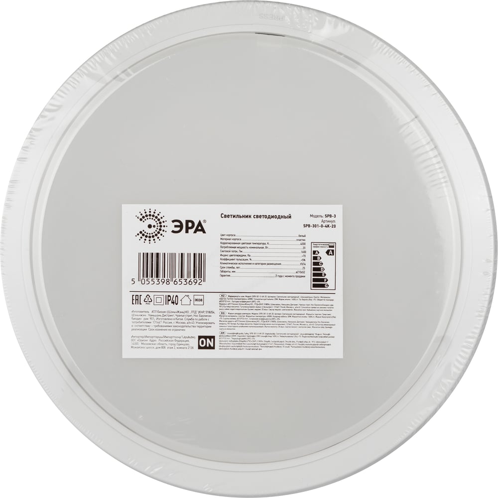 | Материал плафона | пластик |