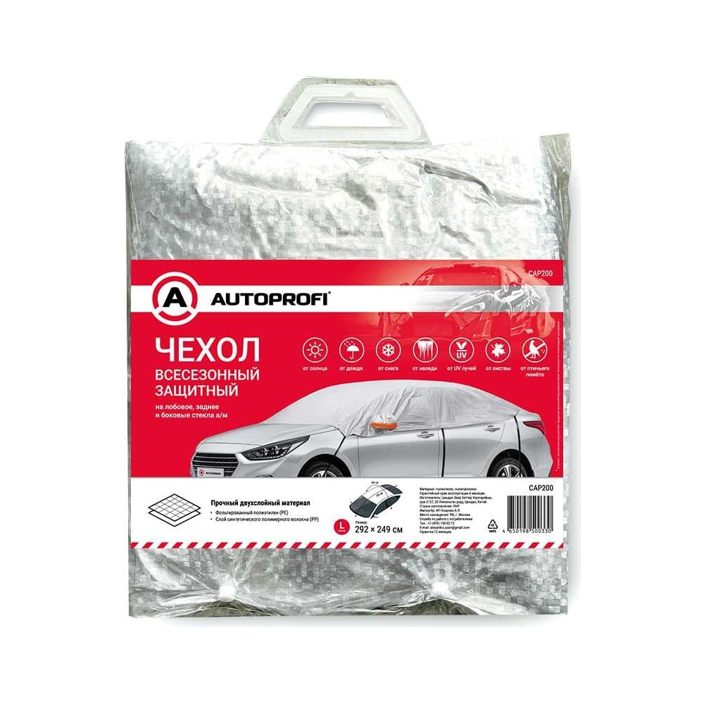 Всесезонный защитный чехол AUTOPROFI на лобовое, заднее и боковые стекла автомобиля, размер L, 292x249 см, прочный двухслойный материал: фольгированный полиэтилен (PE) CAP200