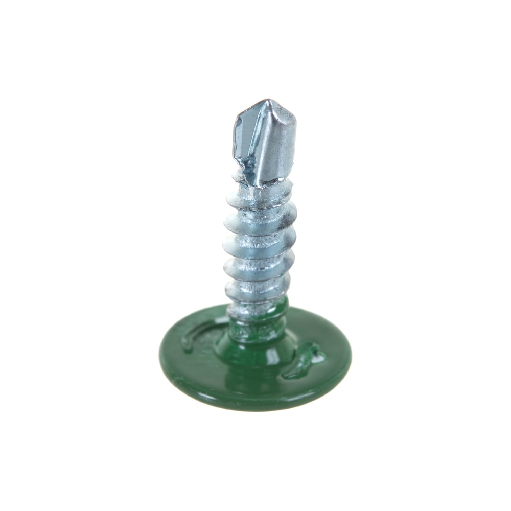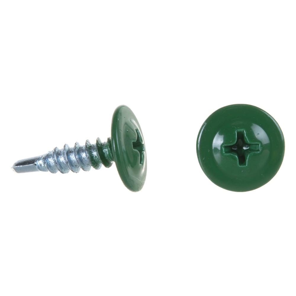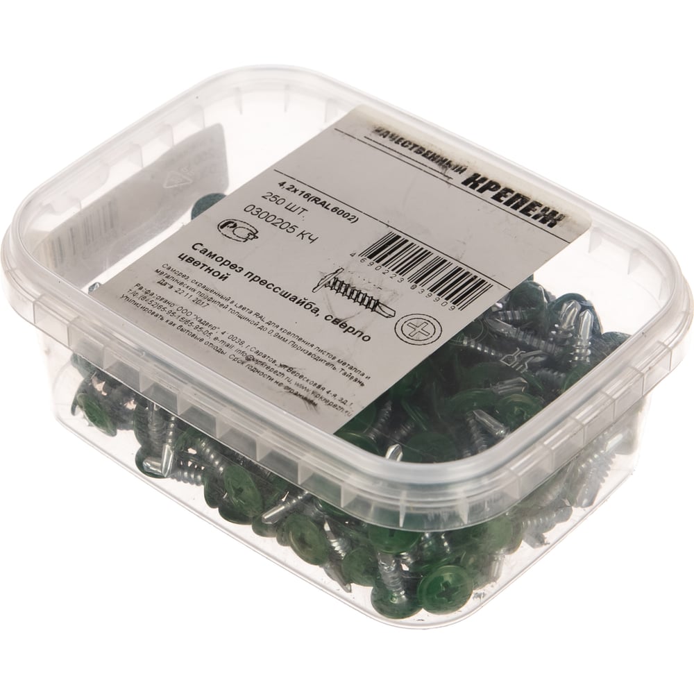 Саморез с прессшайбой и сверлом качественный крепеж 4,2/16 RAL6002 зеленый лист (250 шт.) 0300205