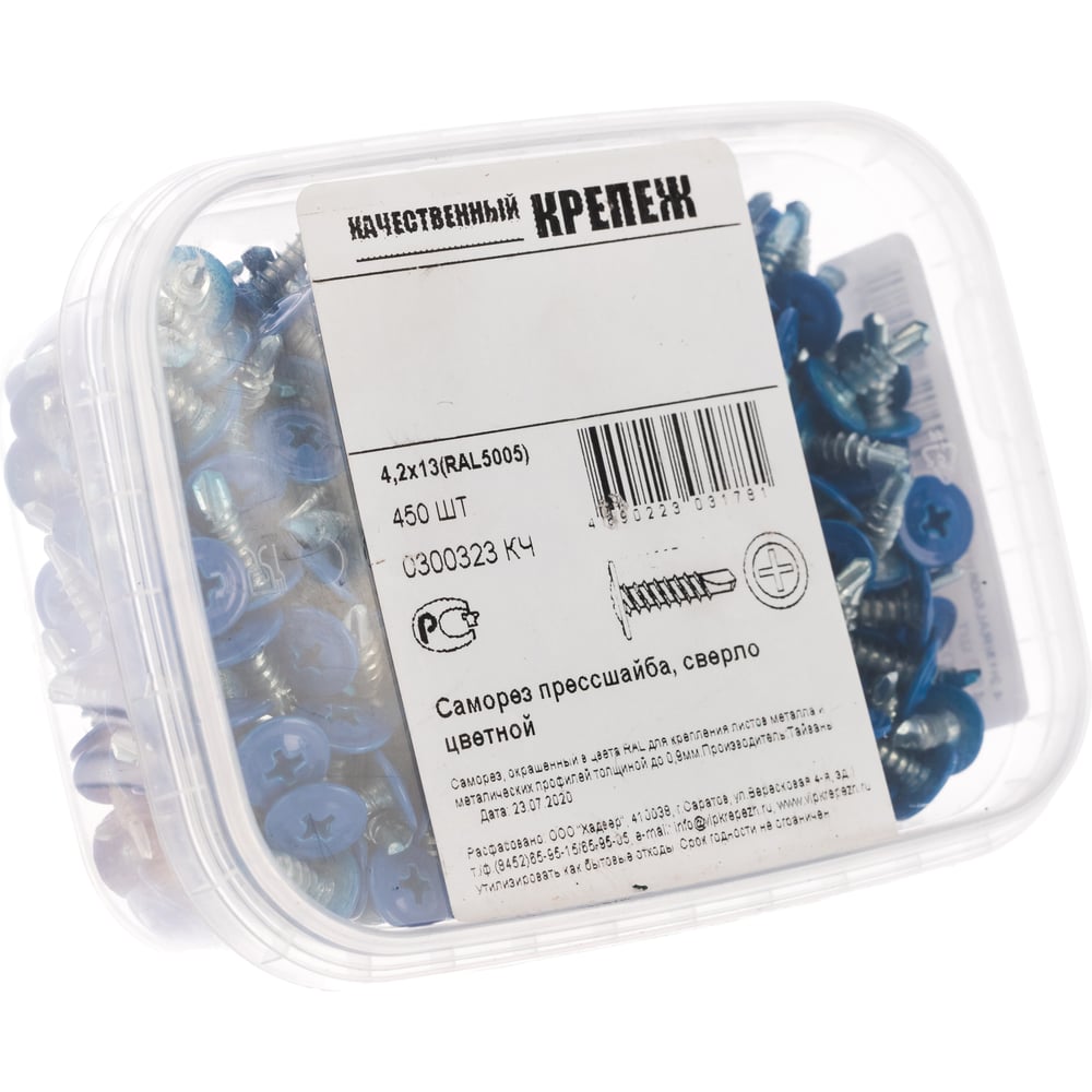 Прессшайба Качественный КРЕПЕЖ 4.2х13 мм, синяя RAL 5005, сверло, 450 шт 0300323 КЧ