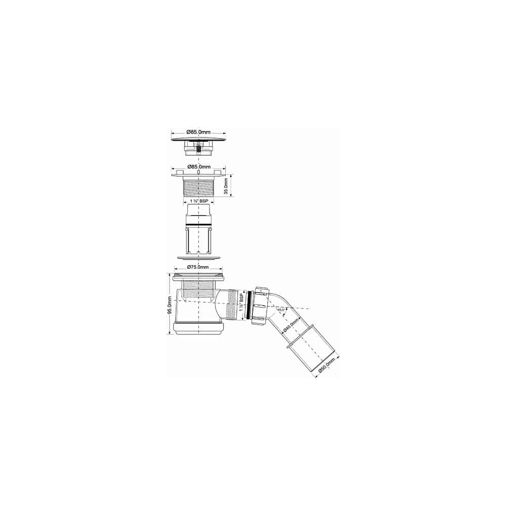 Сифон для поддона McAlpine (выпуск 85 мм) 50/75-1 1/2, h=92мм, с трубкой 40/50 MRS3C-S