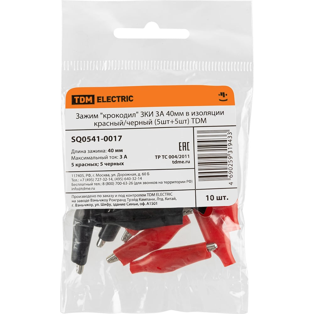 Зажим крокодил для проводов TDM ELECTRIC 3А 40мм в изоляции 5 шт+5 шт SQ0541-0017