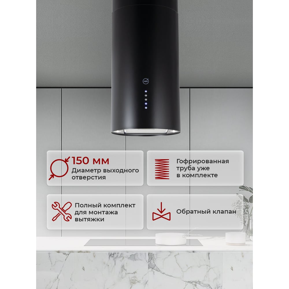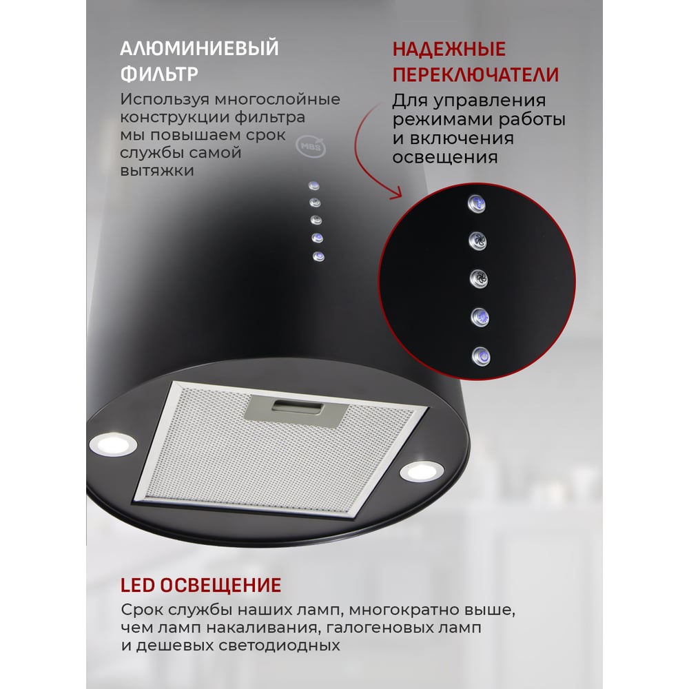 Кухонная вытяжка MBS AMARANTH 135 ISLAND BLACK 5339