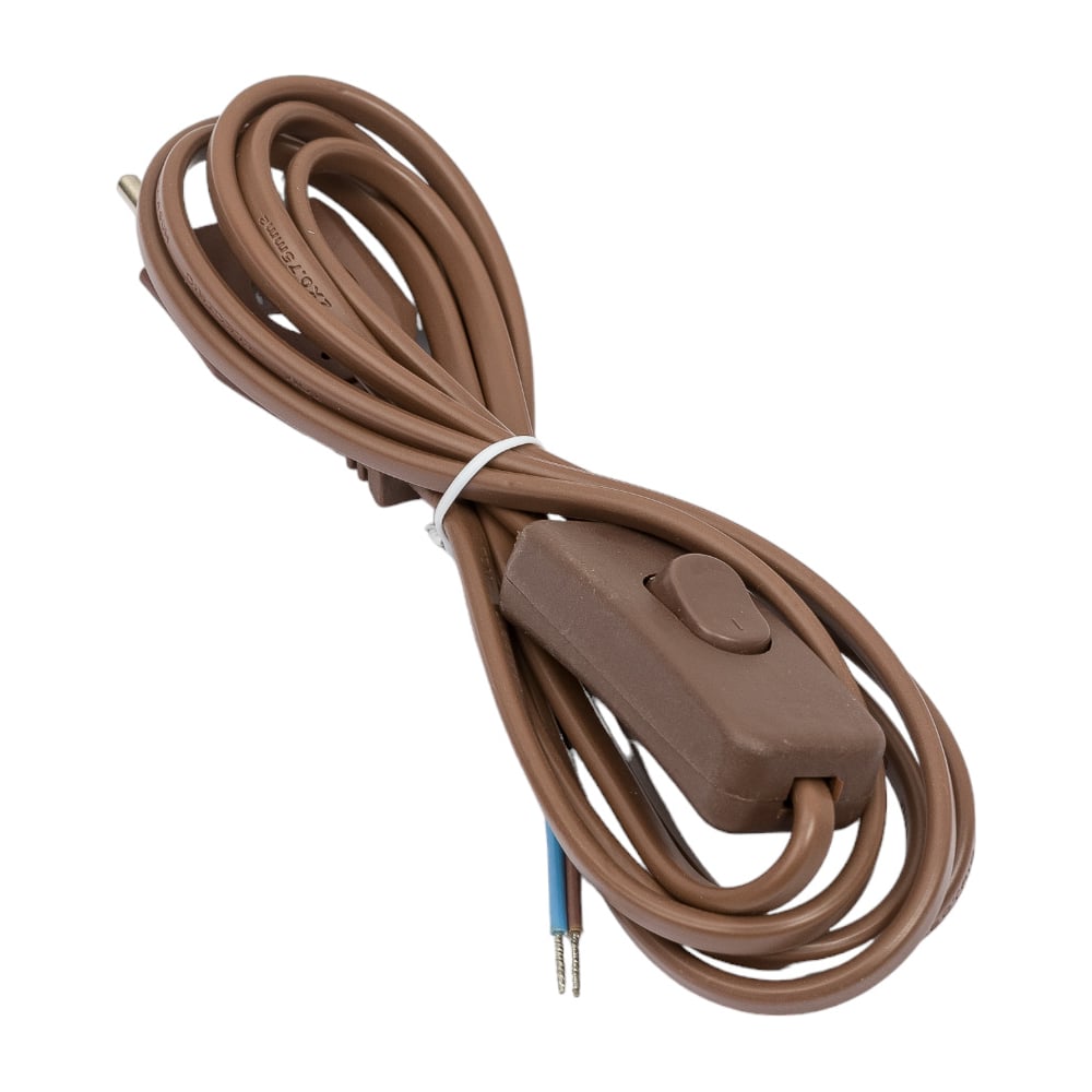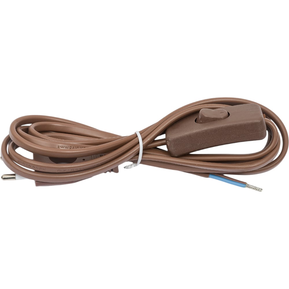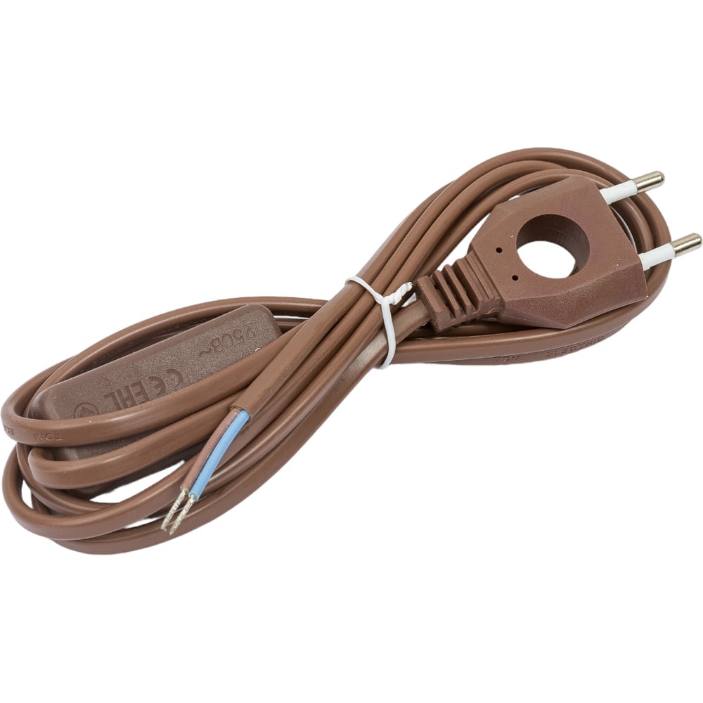 Шнур с выключателем и плоской вилкой TDM ELECTRIC с вырезом ШУ03В ШВВП 2x0,75мм2 2 м. коричневый ЭКО SQ1305-0026