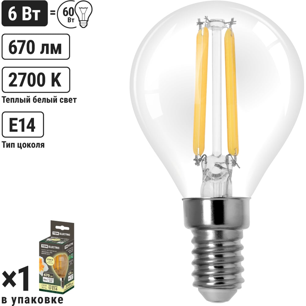 Лампа светодиодная E14 "Филамент" G45-6 Вт-230 В-2700 К TDM ELECTRIC SQ0340-0277