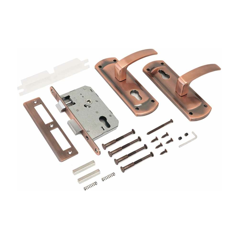 Врезной замок с ручками Аллюр ЗВ4-1/55A AC старая медь, автомат, без механизма секрета 7156