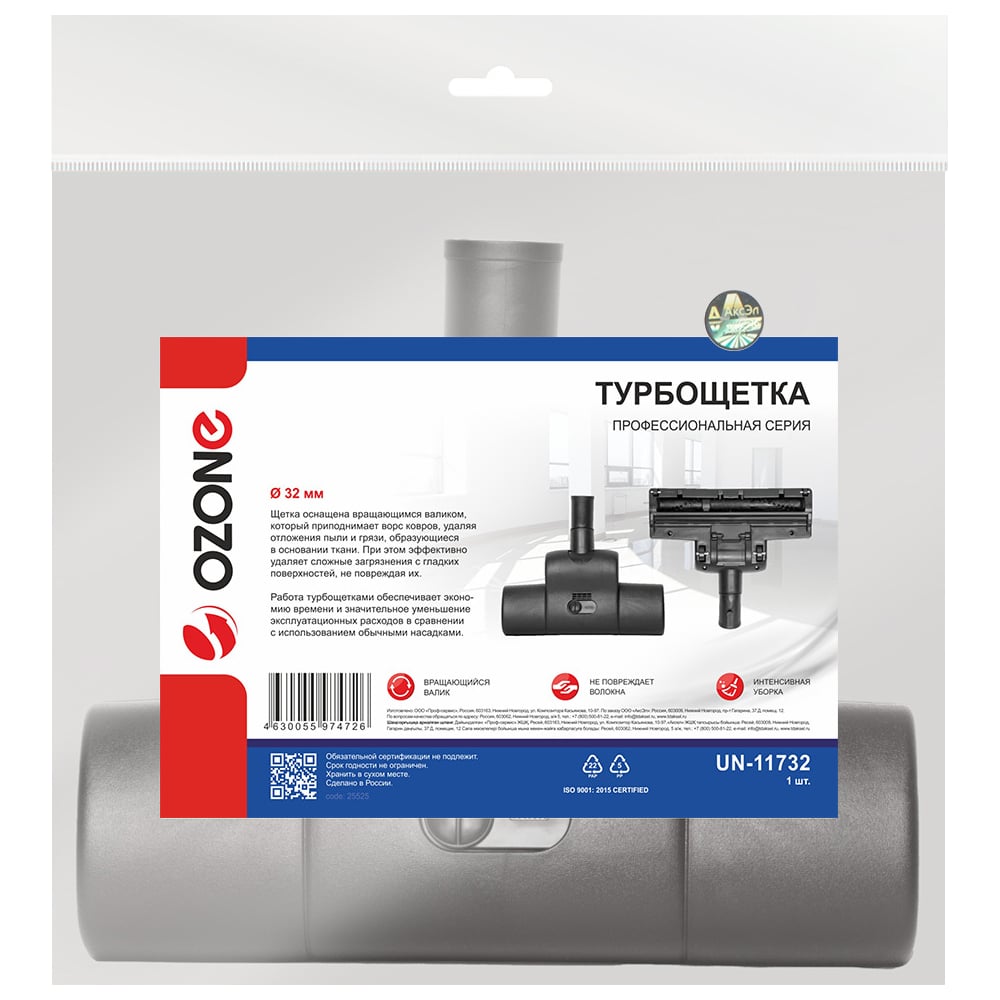 Турбощетка для профессионального пылесоса под трубки 32 мм OZONE UN-11732