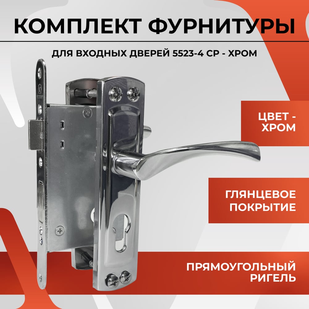 Врезной замок в комплекте с ручкой VETTORE 5523-4 CP хром 20535