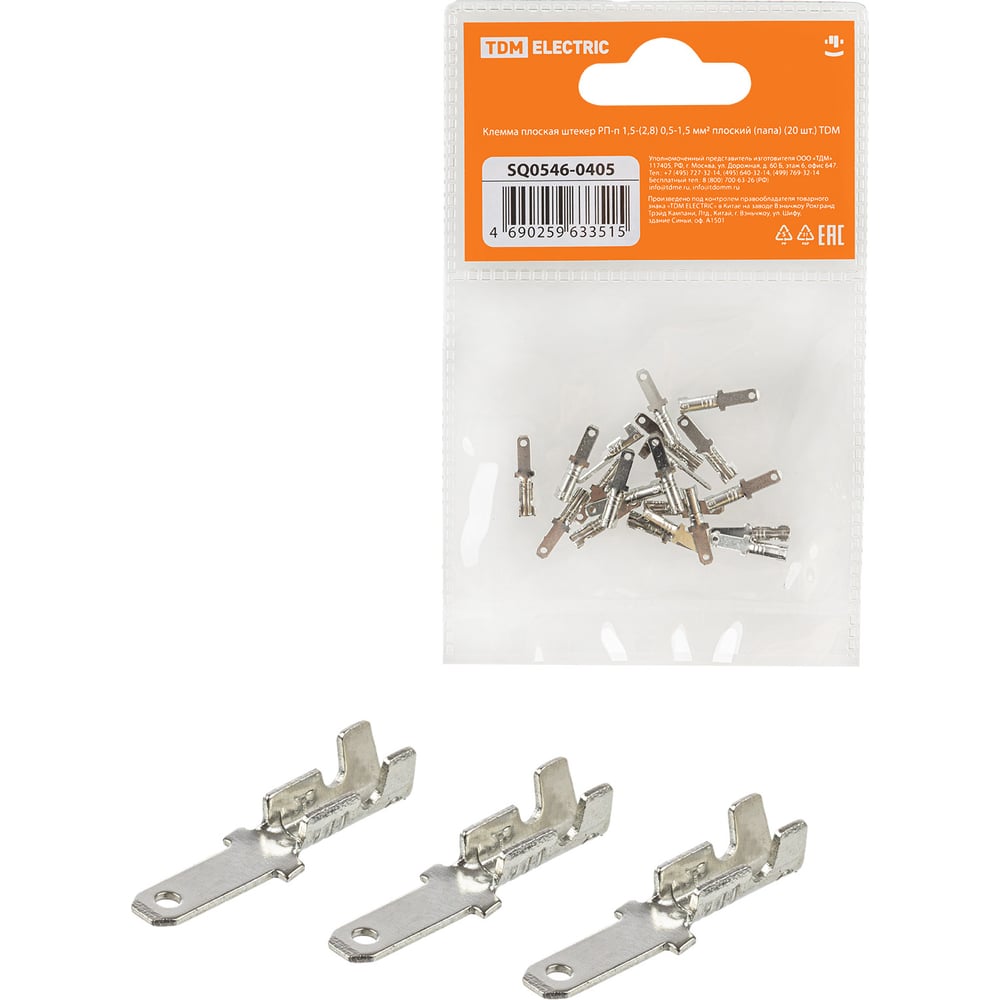 Клемма плоская TDM ELECTRIC штекер1,5-2,8 0,5-1,5 мм² папа 20 шт SQ0546-0405