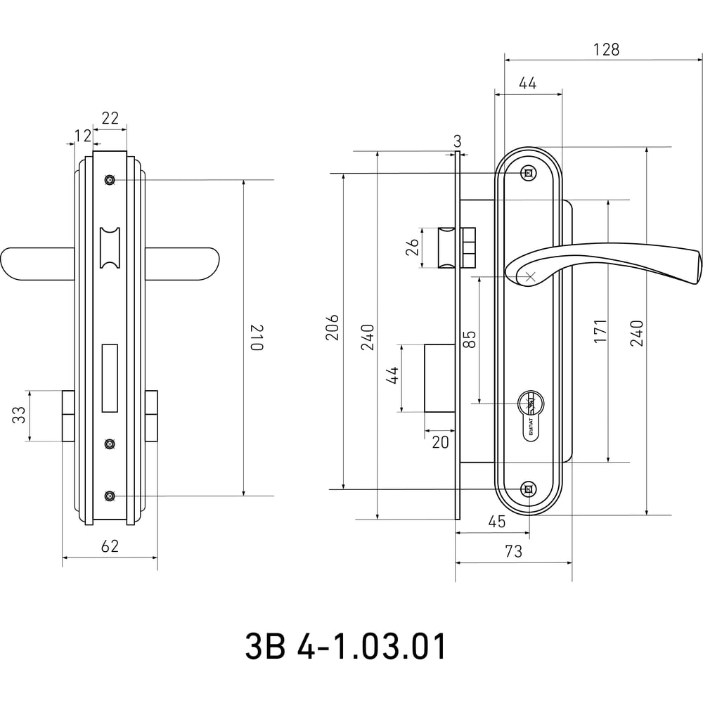 Врезной замок БУЛАТ ЗВ4-1.03.01 НОМОС 13557