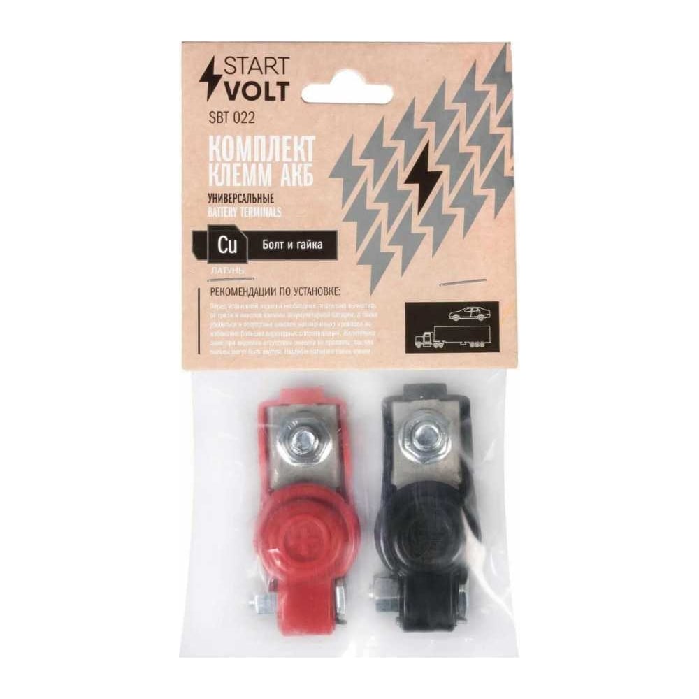 Клеммы АКБ StartVOLT в комплекте латунь в пластиковом изоляторе, болт и гайка SBT 022