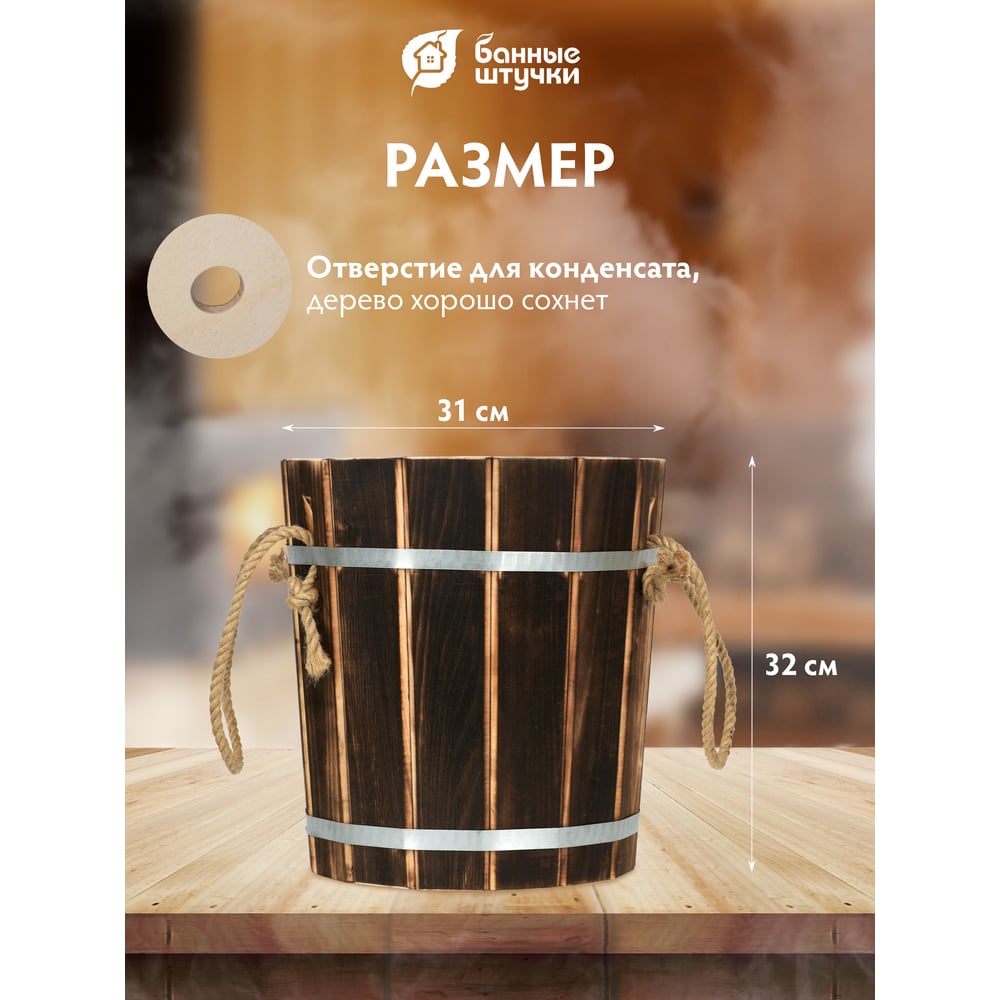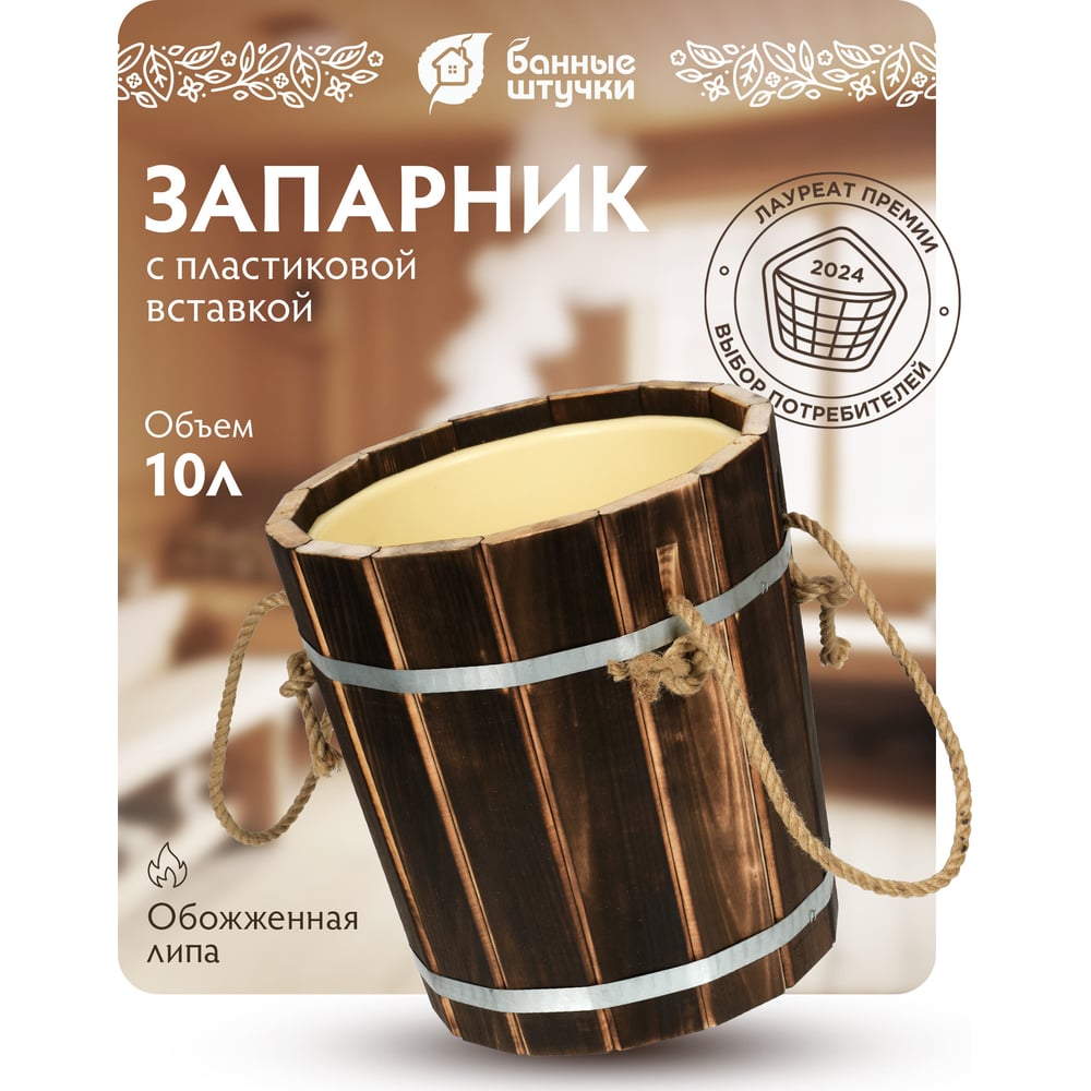 Запарник Банные Штучки 10 л, с пластиковой вставкой, обожжённая липа 33331