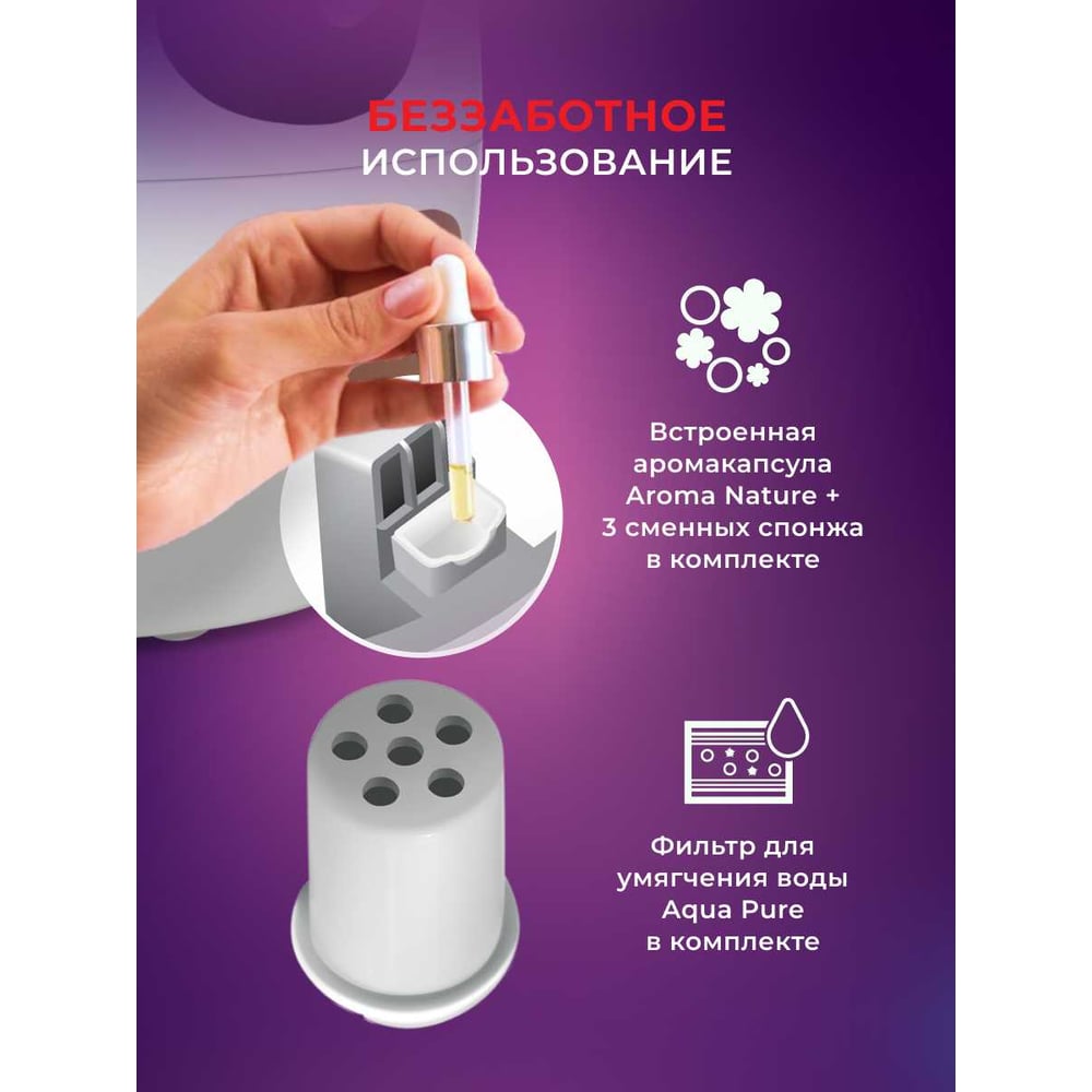 Габариты без упаковки 225x198x180 мм Цвет серый Тип установки настольный Вес нетто 1.05 кг Серия МУРРРЗИО Напряжение 220 В Мощность 20 Вт Таймер нет Уровень шума 20 дБ Рекомендуемая площадь 20 м² Управление механическое Пульт ДУ нет Детский да Озонатор нет Объем воды в секции 1.5 л Ионизация нет Функция ароматизации да Ночник нет Технология NanoCloud да Фильтр очистки воздуха нет Фильтр от белого налета да Расход воды 200 г/ч Тип увлажнителя ультразвуковой УФ лампа нет Датчик влажности нет Управляющее приложение не применимо С верхним доливом воды нет Тип удаленного управления нет