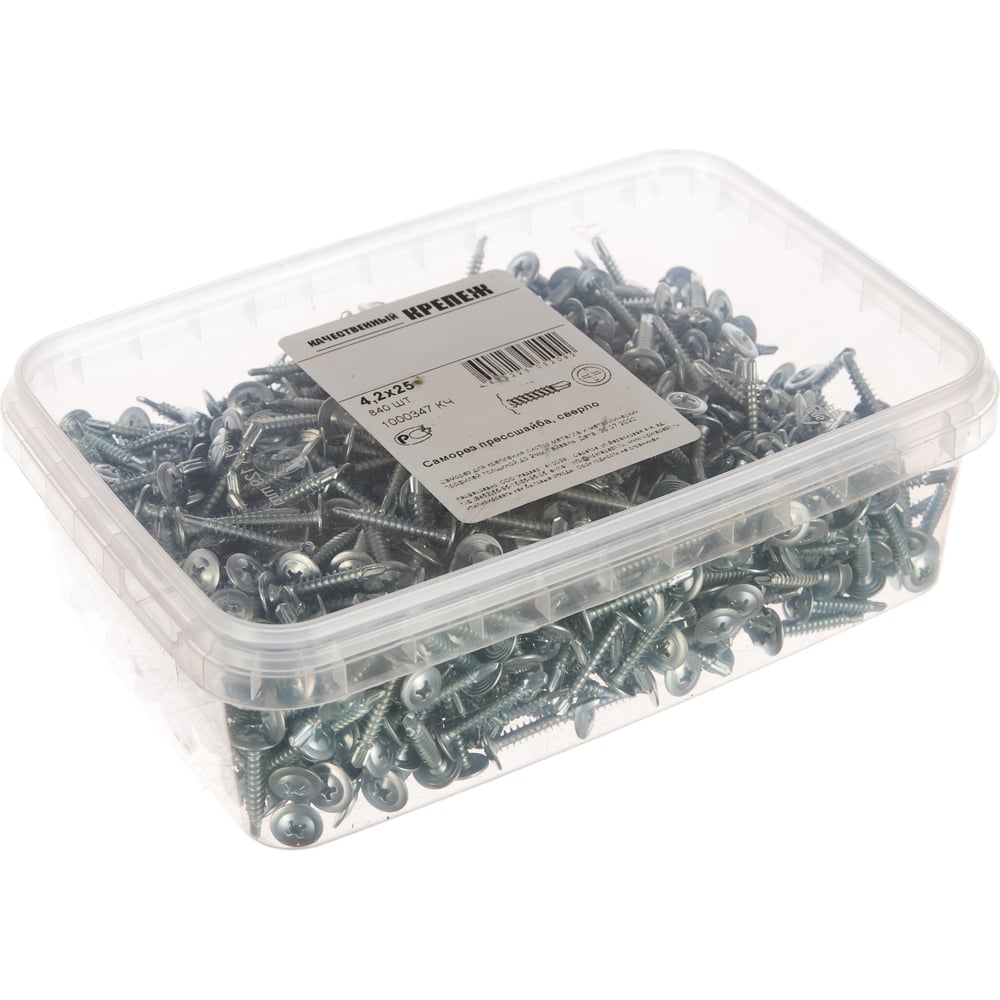 Саморез с прессшайбой Качественный крепеж 4,2х25 сверло 840 шт 1000347 КЧ
