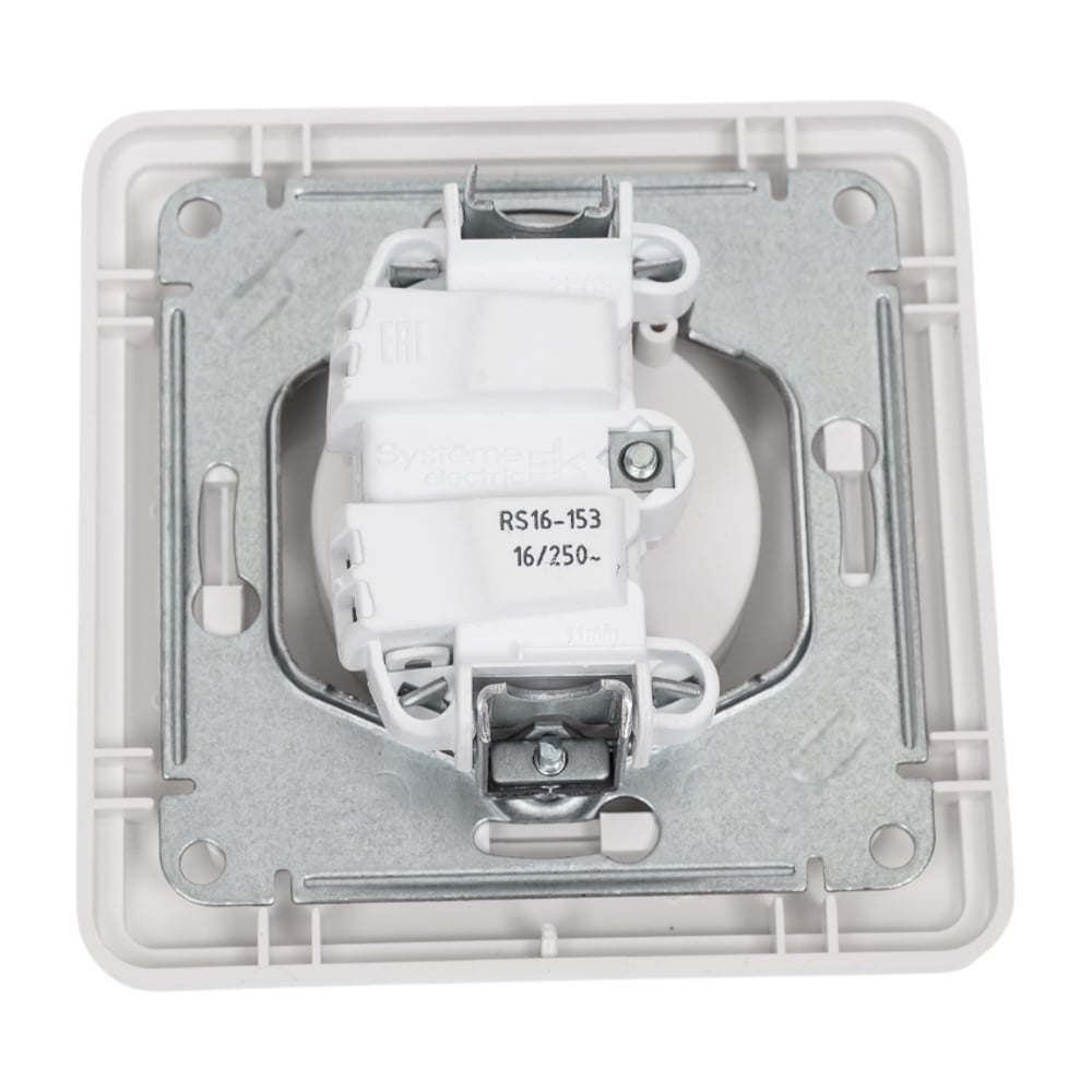 1-местная розетка Systeme Electric скрытой проводки W59 16А IP20 без заземления без защитных шторок в сборе белый RS16-153-18