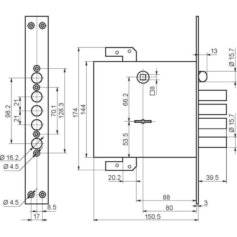 | Удаление ключевого отверстия (Backset) | 80 мм |