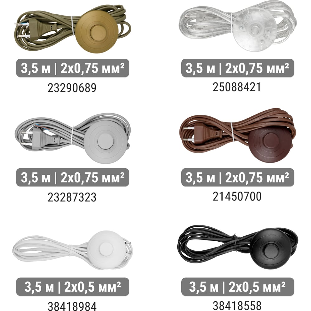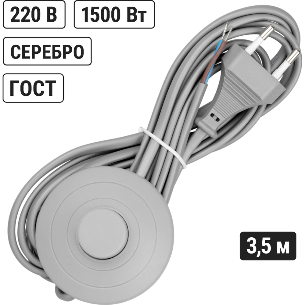 Цвет серебро Тип шнур с вилкой Класс товара Профессиональный Вес нетто 0.13 кг Основной материал поливинилхлорид (ПВХ) Степень защиты IP20 Выключатель на корпусе да Модельный ряд нет Световая индикация нет Заземление нет Напряжение сети 250 В Номинальная сила тока 6 А Длина кабеля 3.5 м Max нагрузка 1.2 кВт Сечение провода 2х0.75 мм² Max импульсный ток 0.006 кА Max нагрузка (Вт) 1200 Тип провода ШВВП Количество розеток нет шт Тип розетки евро Тип выключателя ножной