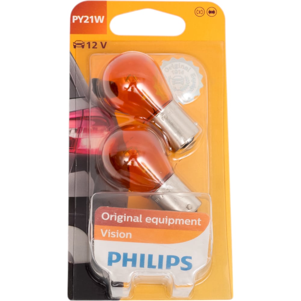 Автолампа PHILIPS PY21W BAU15s YELLOW, 2шт 12V ,1,10 12496NAB2