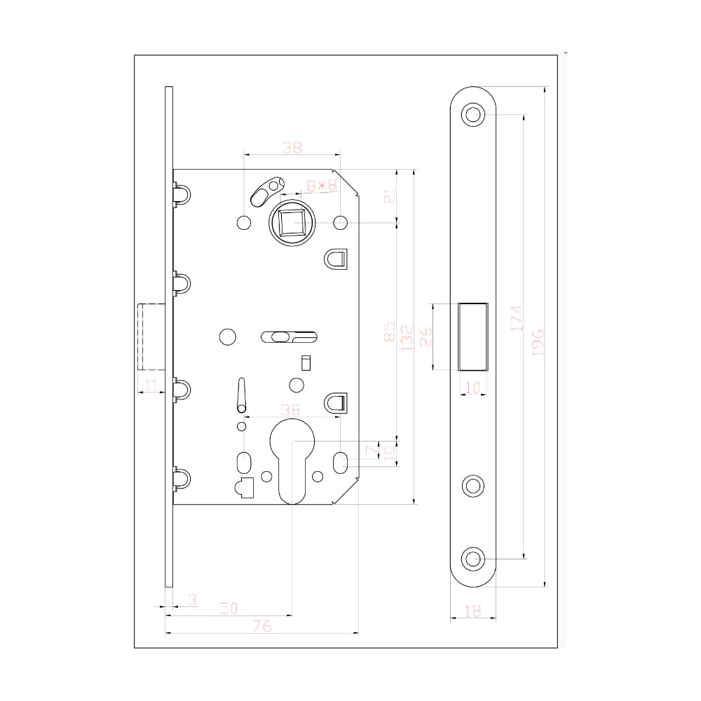 | Удаление ключевого отверстия (Backset) | 50 мм |