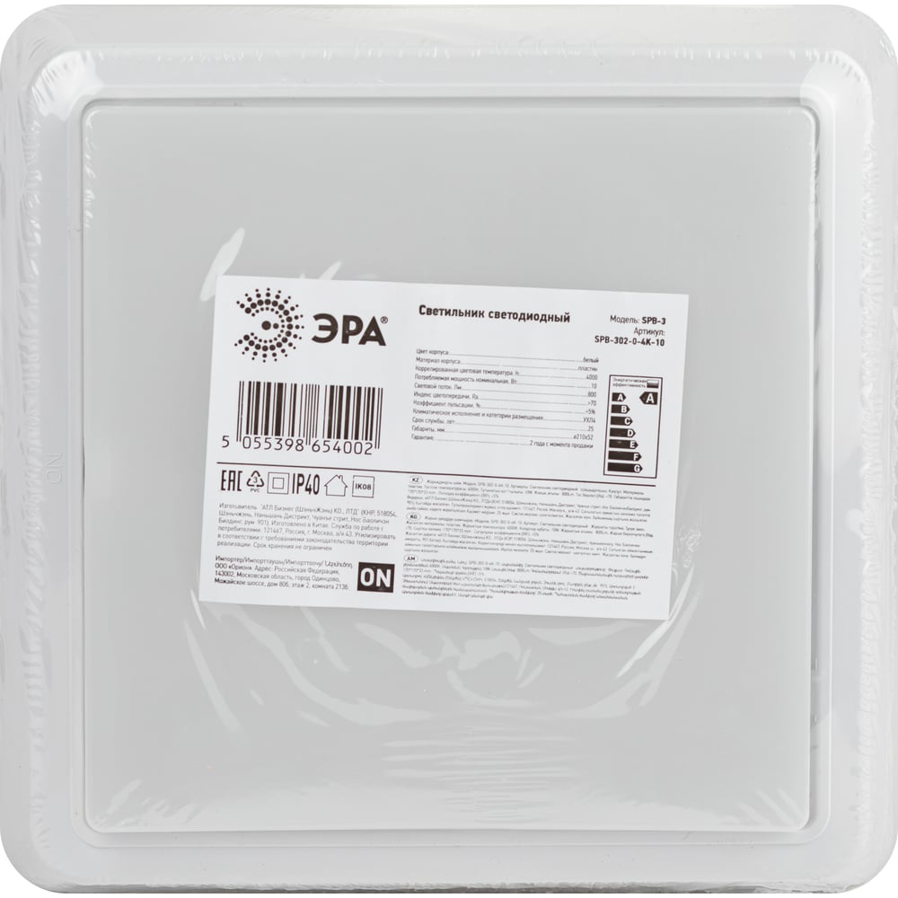 | Материал плафона | пластик |