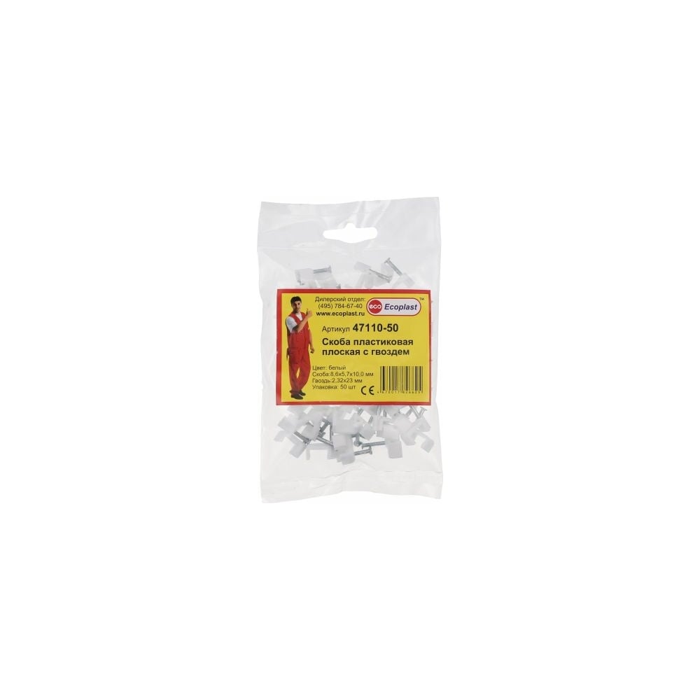 Плоская скоба Экопласт 8.6x5.7x10 пластик, размер гвоздя 2,32x23 мм, 50 шт. 47110-50
