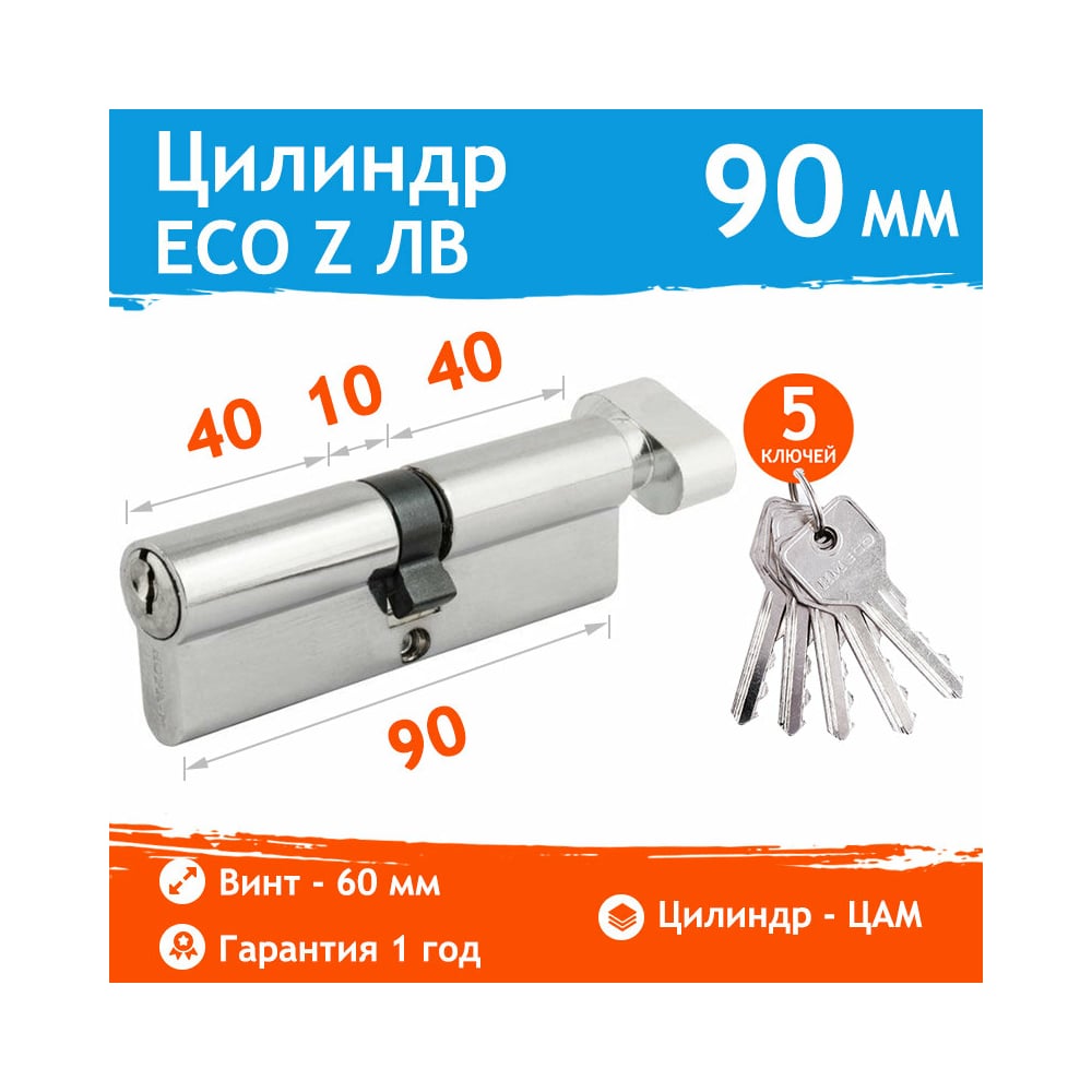 Цилиндровый механизм НОРА-М ЕСО Z ЛВ-90 45-45 хром 15545
