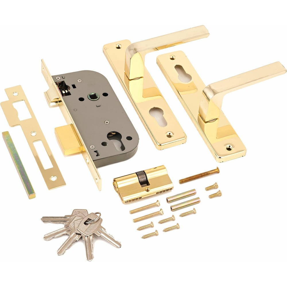 Врезной замок с ручками Аллюр латунь 1074