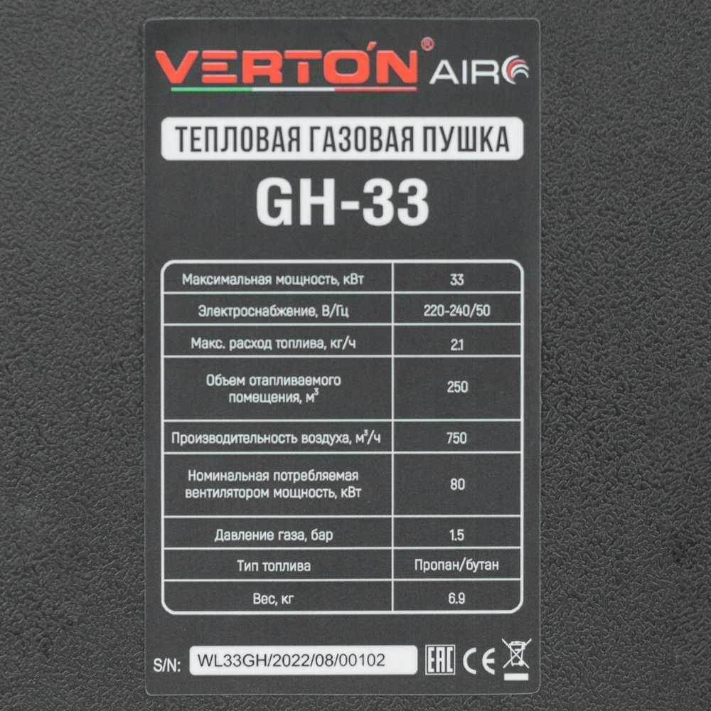 Газовая тепловая пушка VERTON Air GH-33 01.13454.13457