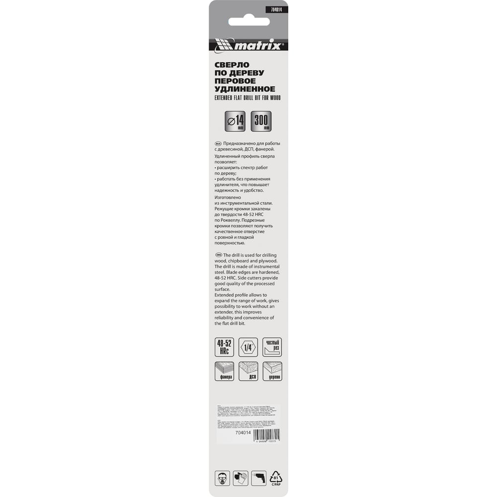 Удлиненное перовое сверло по дереву MATRIX 704014