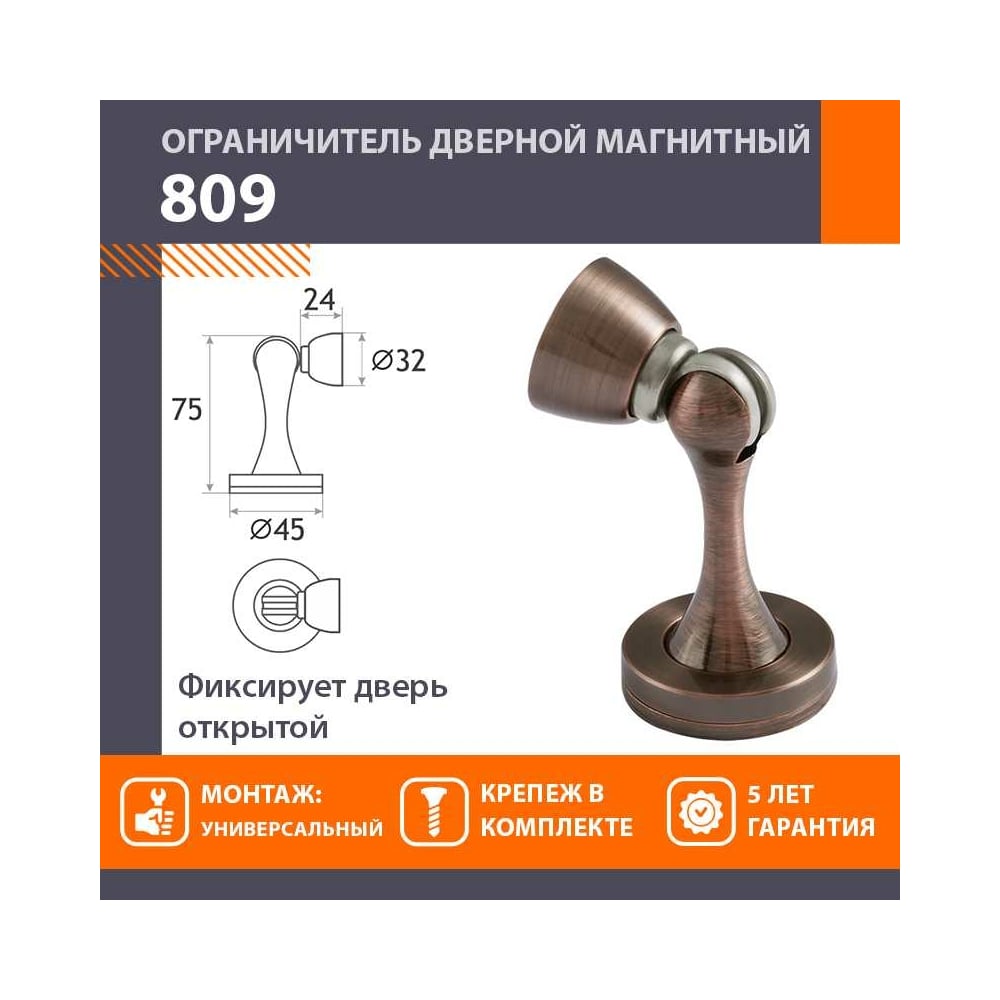 Магнитный ограничитель НОРА-М 809 ст.медь 8888