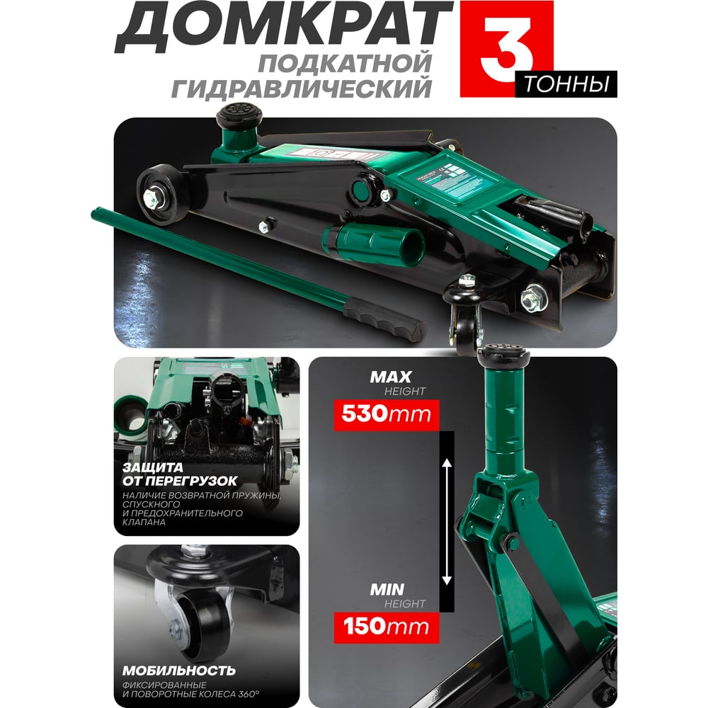 Гидравлический подкатной домкрат с механизмом быстрого подъема и сменной надставкой ROCKFORCE 3т RF-T83006B(16087)
