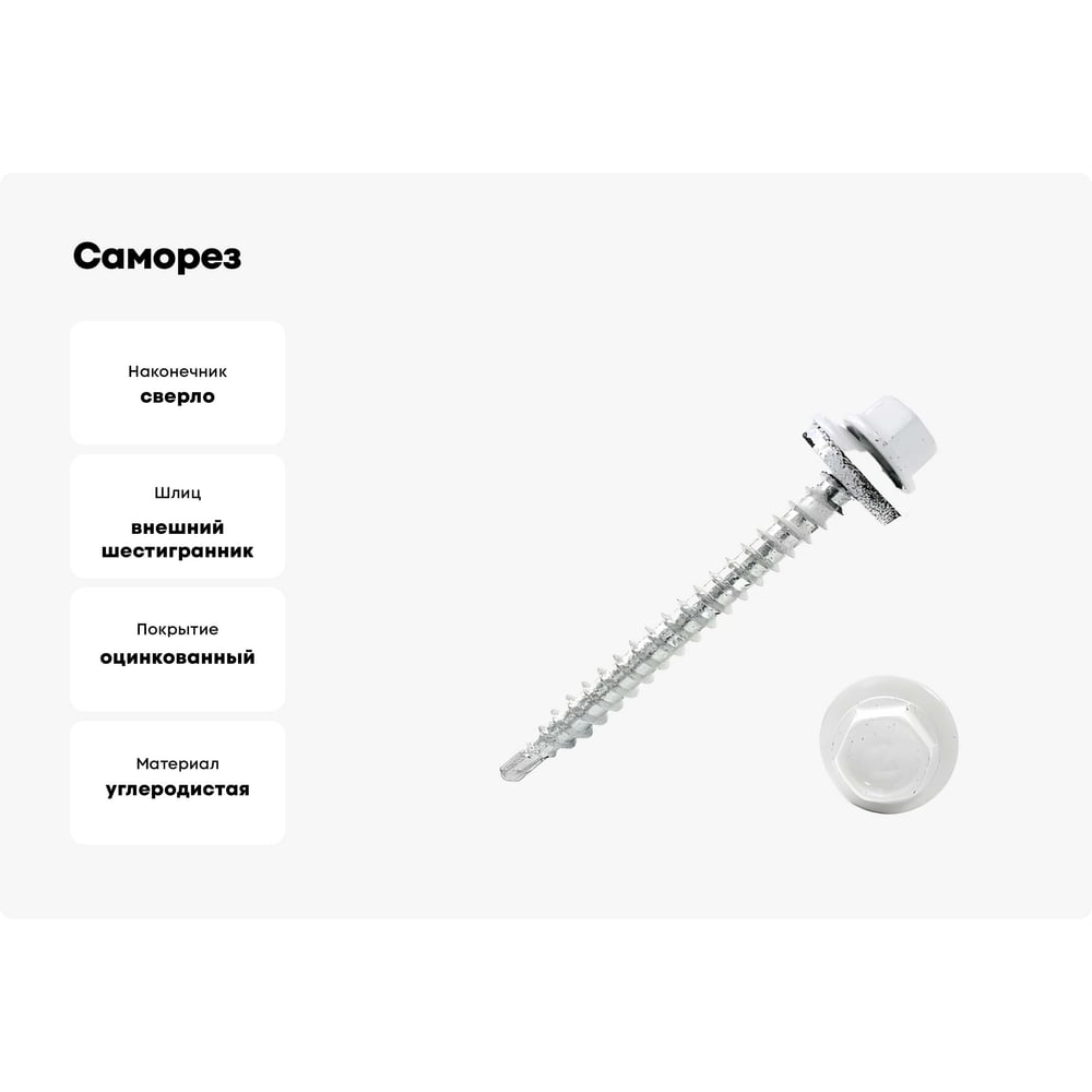 Саморез КР со сверлом, 4,8x51 мм, RAL-9003 ярко-белый, 5 кг в коробке Zitar 151770