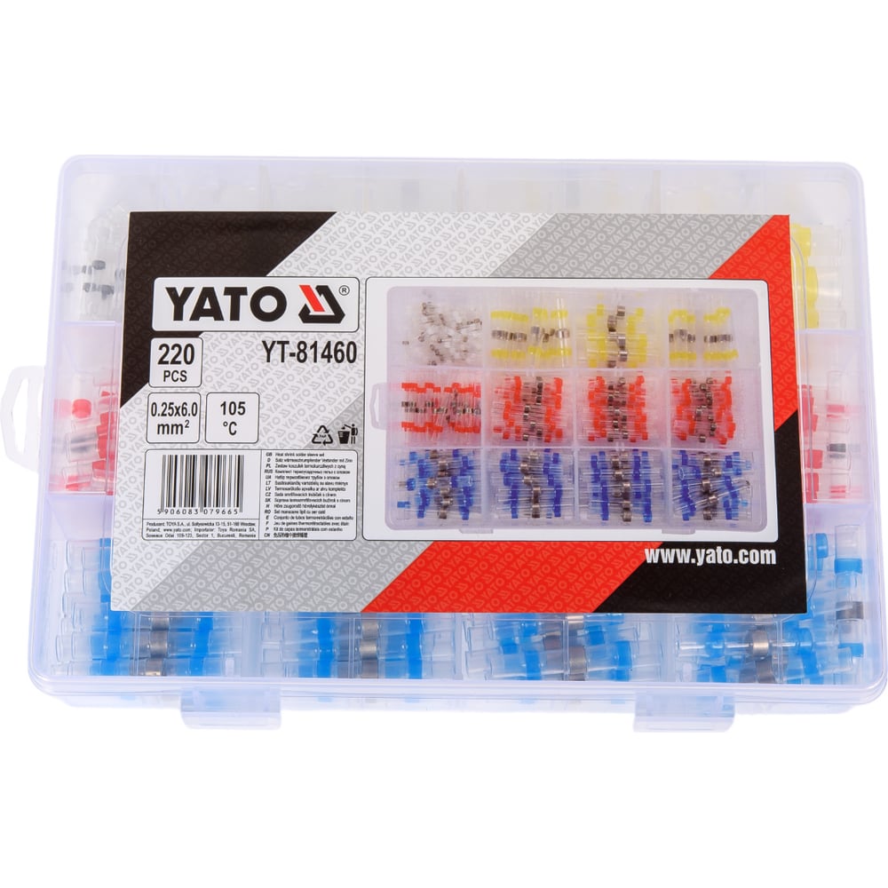Набор термоусадочных трубок с припоем YATO 0,25-6мм2 220шт. (пластиковый кейс) YT-81460 377181460 092 1