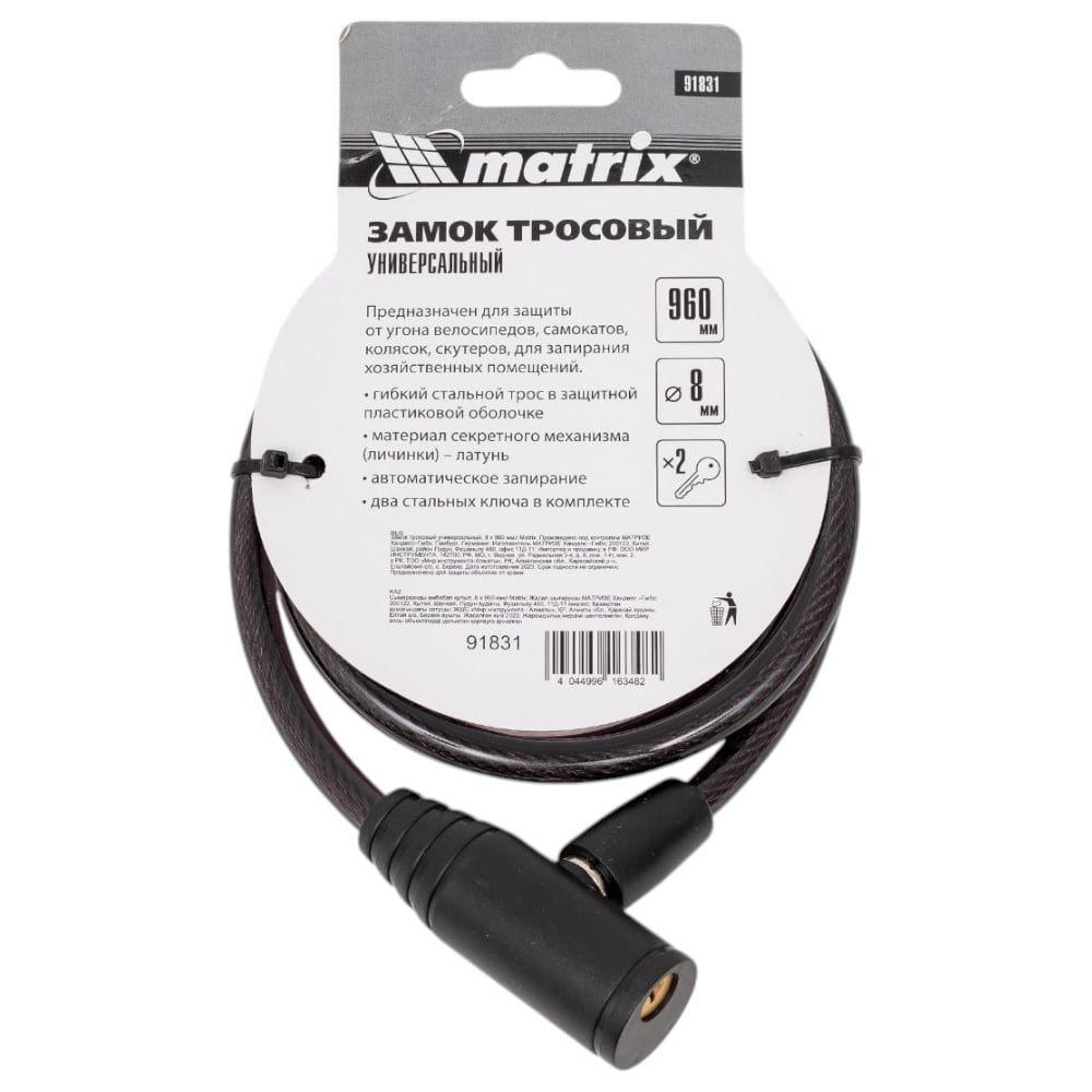 Универсальный тросовый замок MATRIX 91831