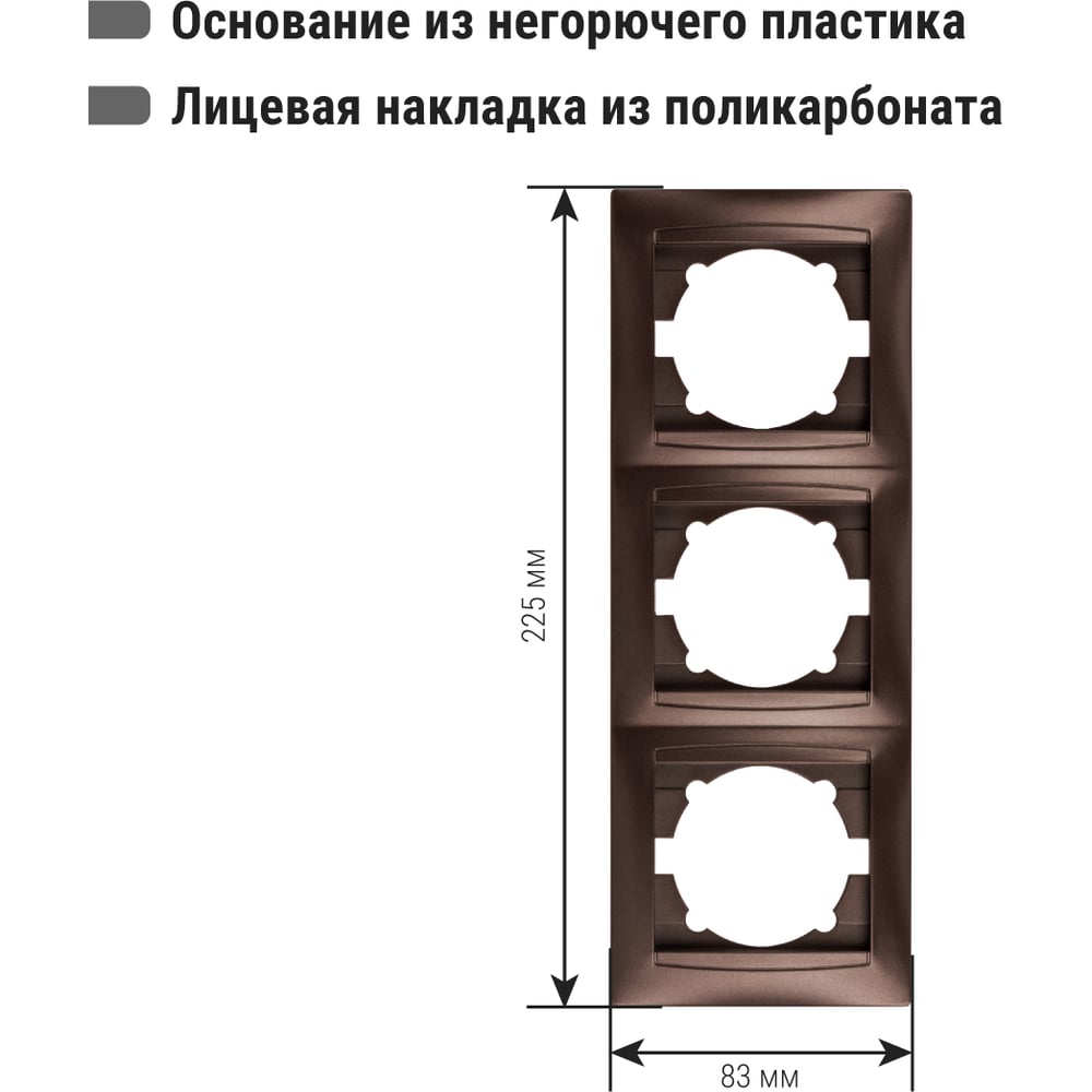 Рамка 3-х постовая вертикальная TDM ELECTRIC шоколад, серия "Лама" SQ1815-0534