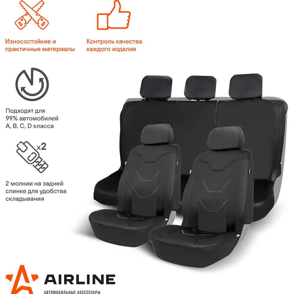 Чехлы для сидений Airline универсал, "RS-7k+", передн./задн., влагозащит., полиэстер, черные ADCS003