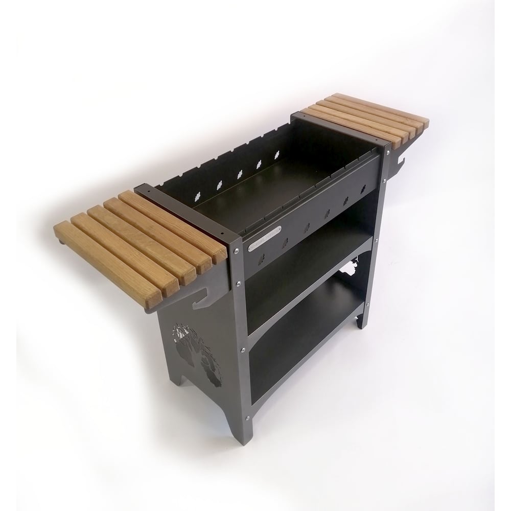 Габариты без упаковки 1114x370x780 мм Высота 780 мм Длина 1114 мм Покрытие жаростойкое/порошковая краска Ширина 370 мм Цвет черный/серый Вид стационарный Вес нетто 21 кг Материал корпуса холоднокатаная сталь Крышка нет Количество полок 4 шт Вертикальный нет Колесики нет Решетка в комплекте нет Кованый нет Столик да Толщина стенок 2 мм Держатель под казан нет Вертел нет Шампуры нет Раздувайка нет Кочерга нет Разборный есть