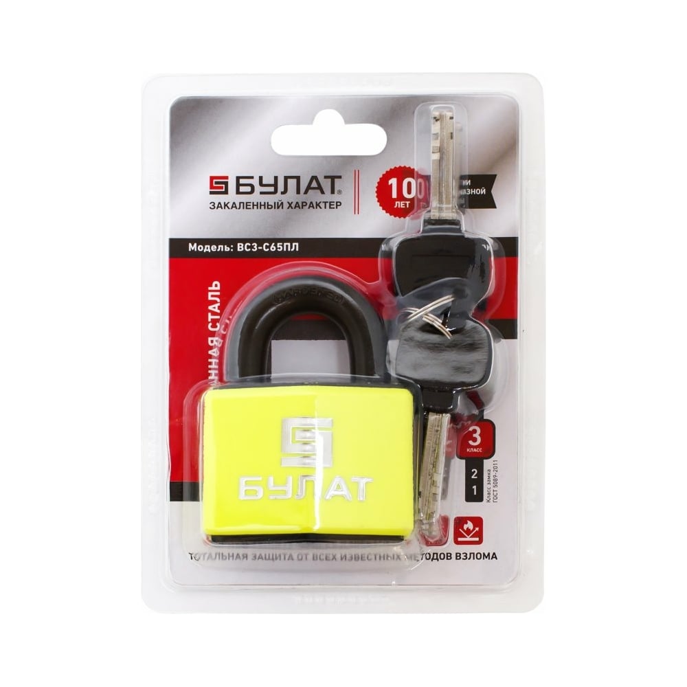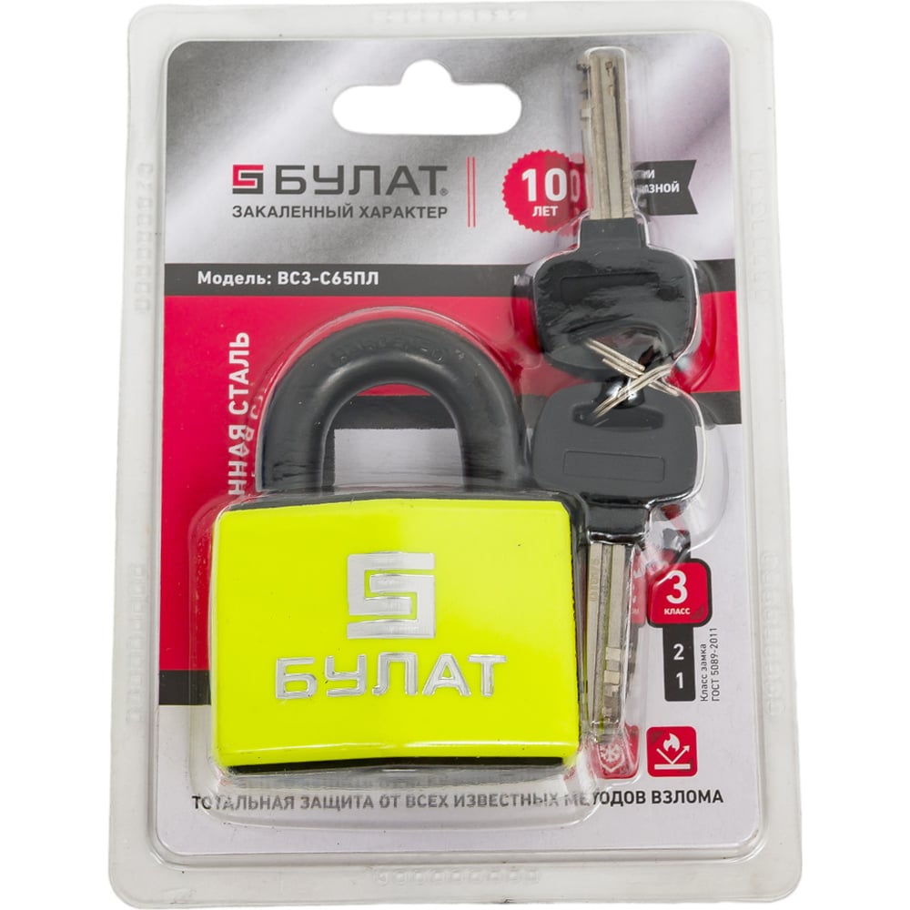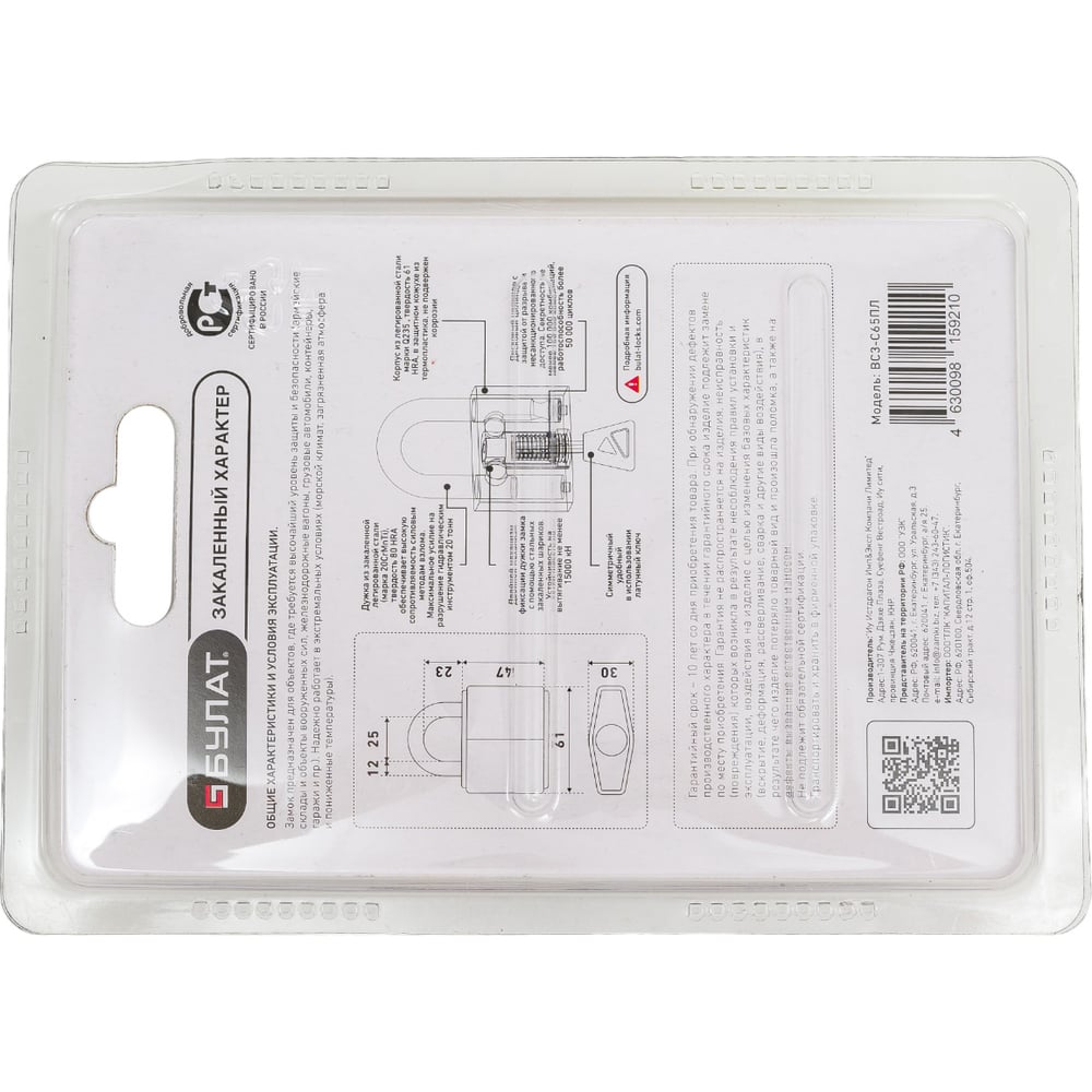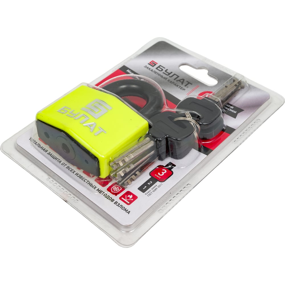 Навесной замок БУЛАТ ВС 3-С65 ПЛ, закаленная сталь, 5 ключей, d=12 мм 14032