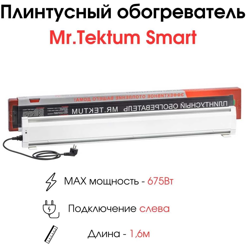 Электрический плинтусный обогреватель Mr.Tektum 675Вт smart 1,6м белый AG-SMART16-WL