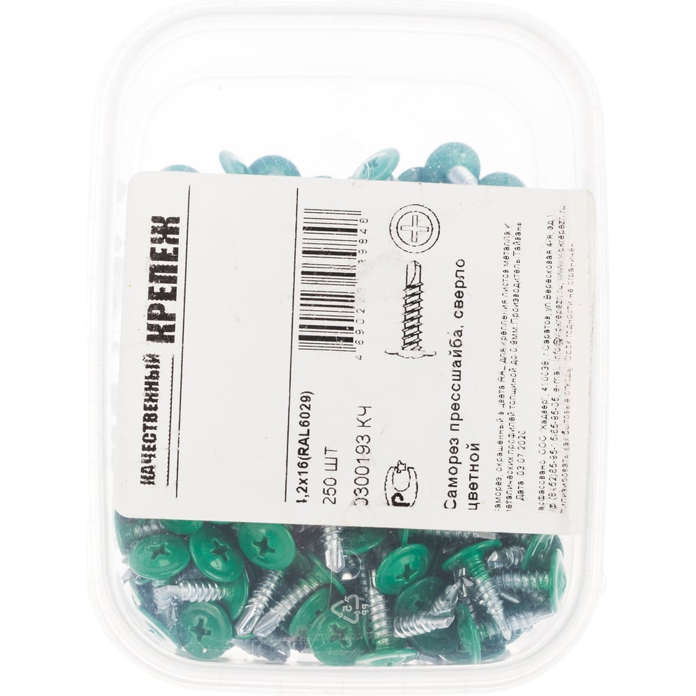 Прессшайба Качественный КРЕПЕЖ 4.2х16 мм, зеленая мята RAL 6029, сверло, 250 шт 0300193 КЧ