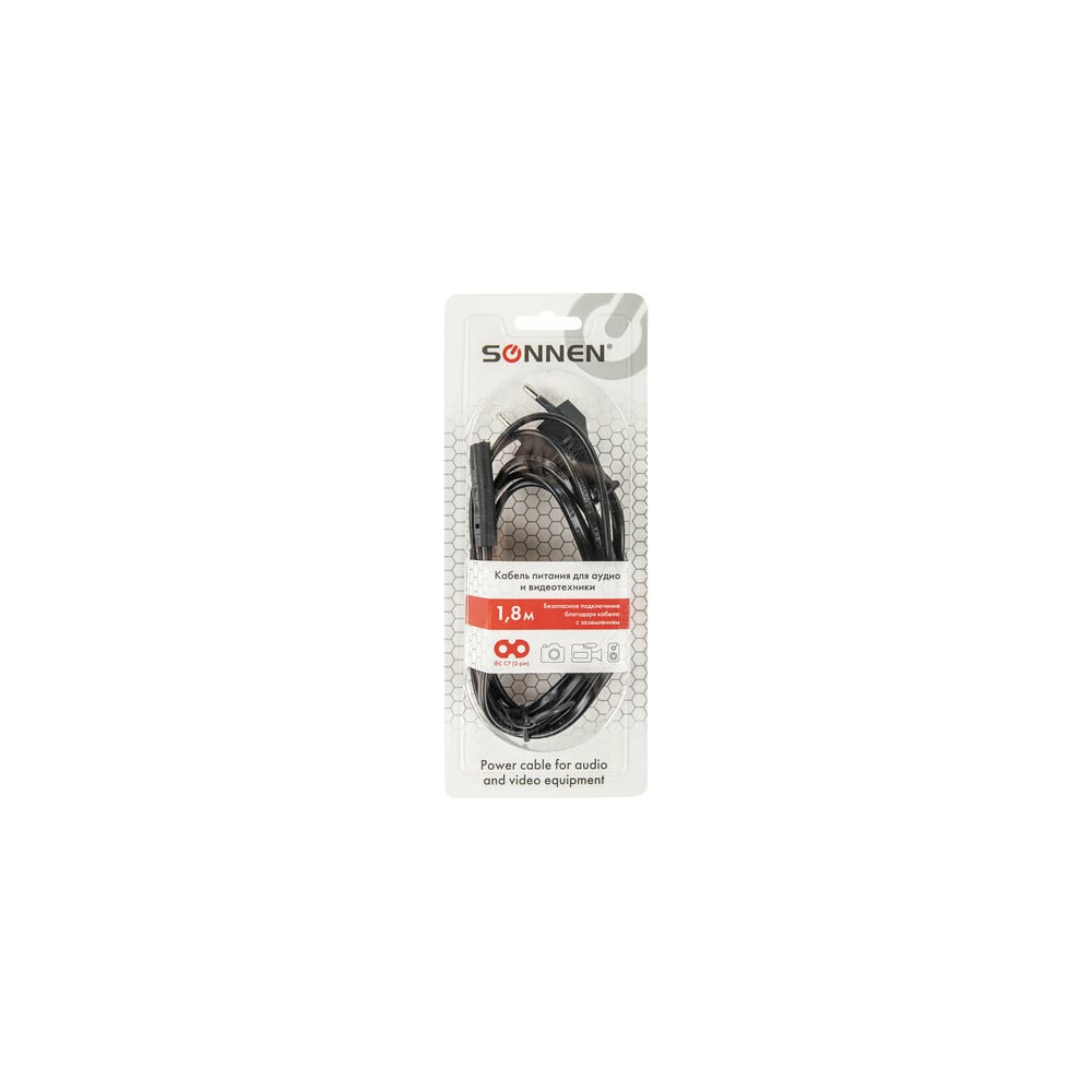 Универсальный кабель питания SONNEN для аудио и видеотехники C7 2 pin, 1,8 м, черный 513564