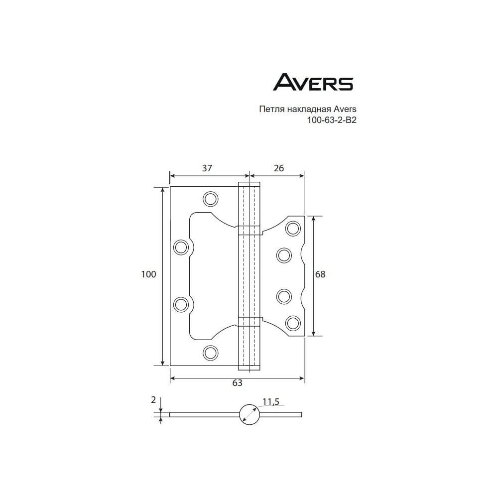 Накладная петля AVERS 100х63х2-B2-NIS 28580