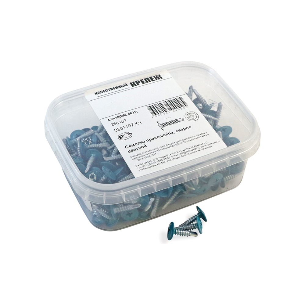 Прессшайба Качественный КРЕПЕЖ 4.2х16 мм, синяя вода RAL 5021, сверло, 250 шт 0301107 КЧ
