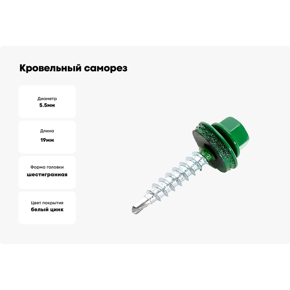 Кровельные саморезы ВИРТУОЗ 5,5х19 мм RAL6002 зеленая листва 25 шт. 27856