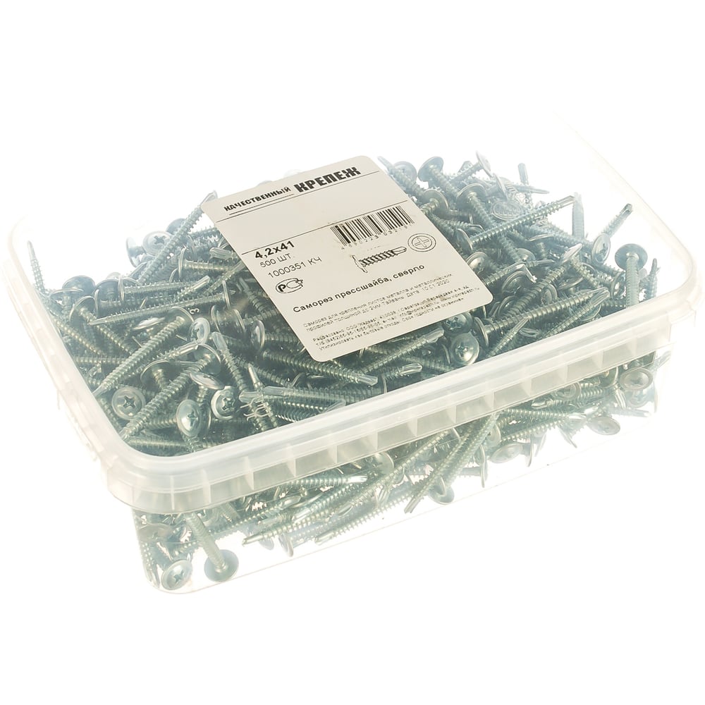 Саморез с прессшайбой Качественный крепеж 4,2х41 сверло 500 шт 1000351 КЧ