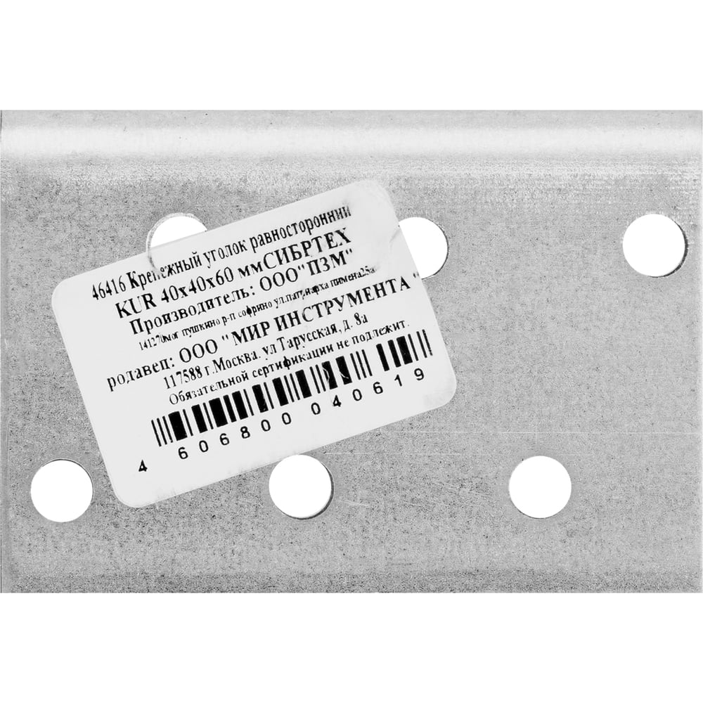 Крепежный равносторонний уголок СИБРТЕХ 2,0 мм, KUR 40x40x60 мм 46416