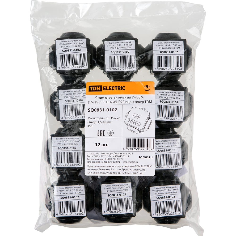 Ответвительный сжим TDM У-733М 16-35 : 1,5-10 мм2 IP20 индикаторный стикер SQ0831-0102