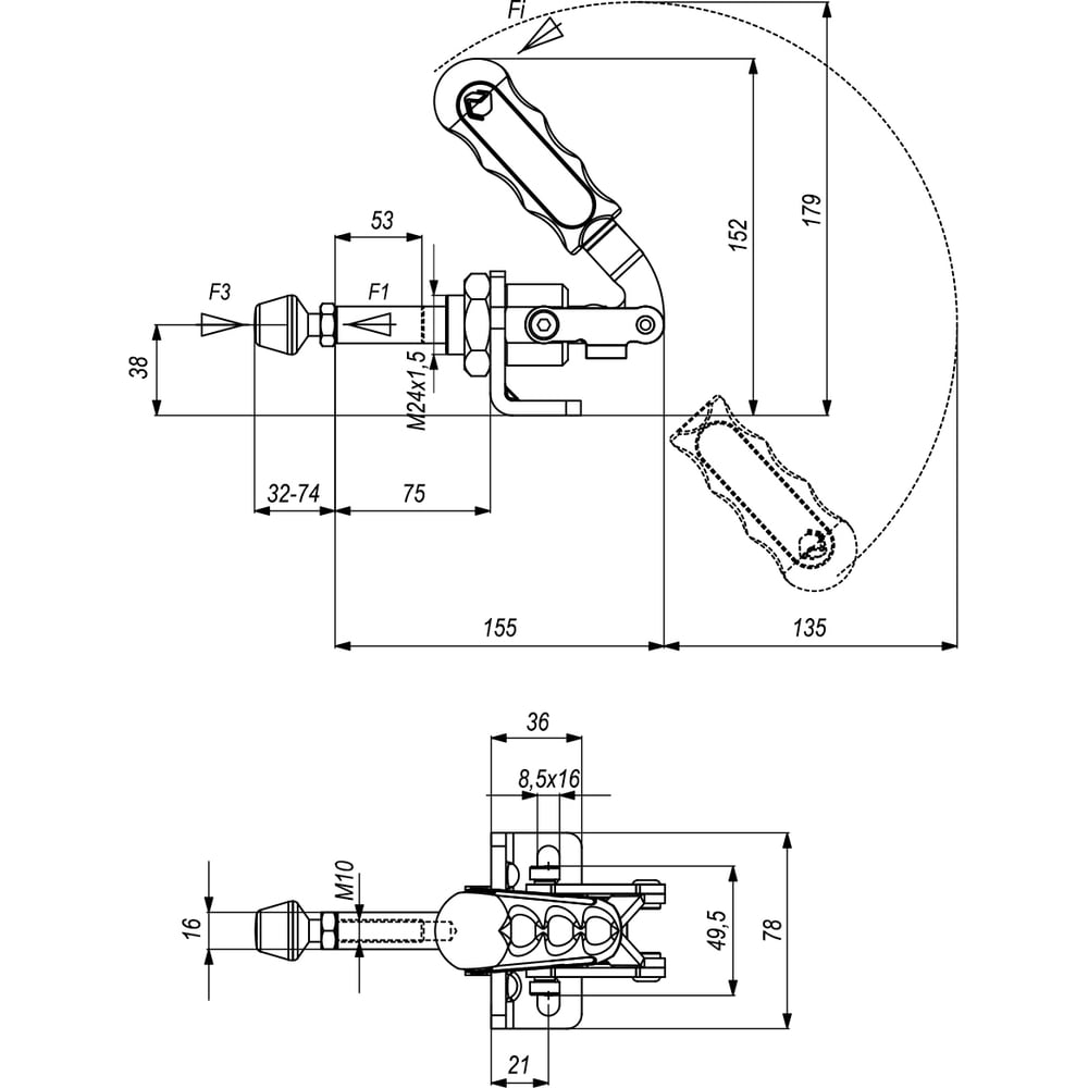 Зажим механический плунжерный с кронштейном KUKAMET, усилие 474 кг 511-6